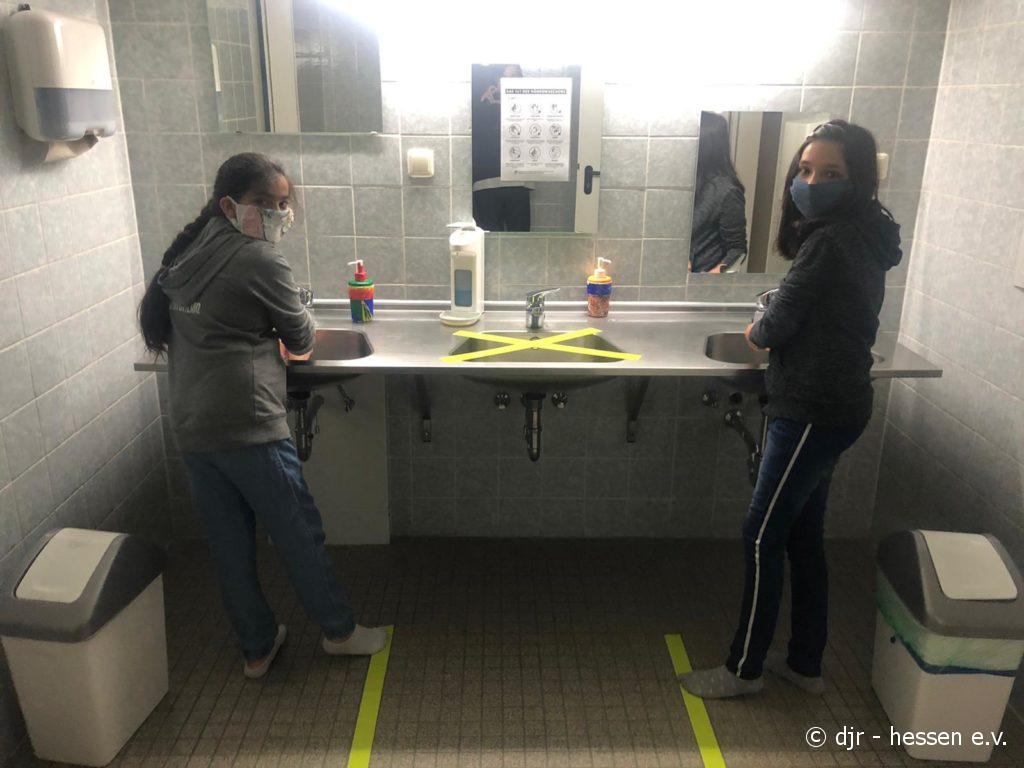 Selbstgemachte (und damit für die Kinder ansprechende) Regelschilder mit Fotos unserer Betreuer*innen, bunte Markierungen, damit der Sicherheitsabstand auch wirklich eingehalten wird, Angebote für Kleingruppen, damit sich nicht zu viele Kinder in einem Raum aufhalten…