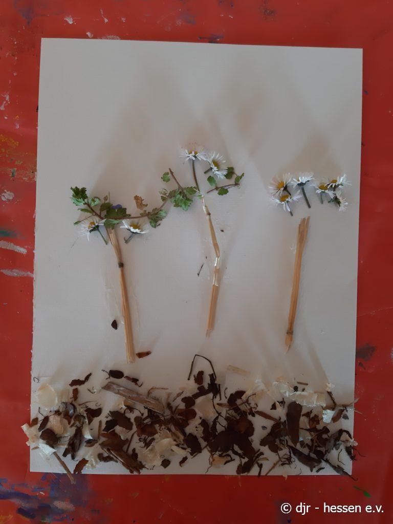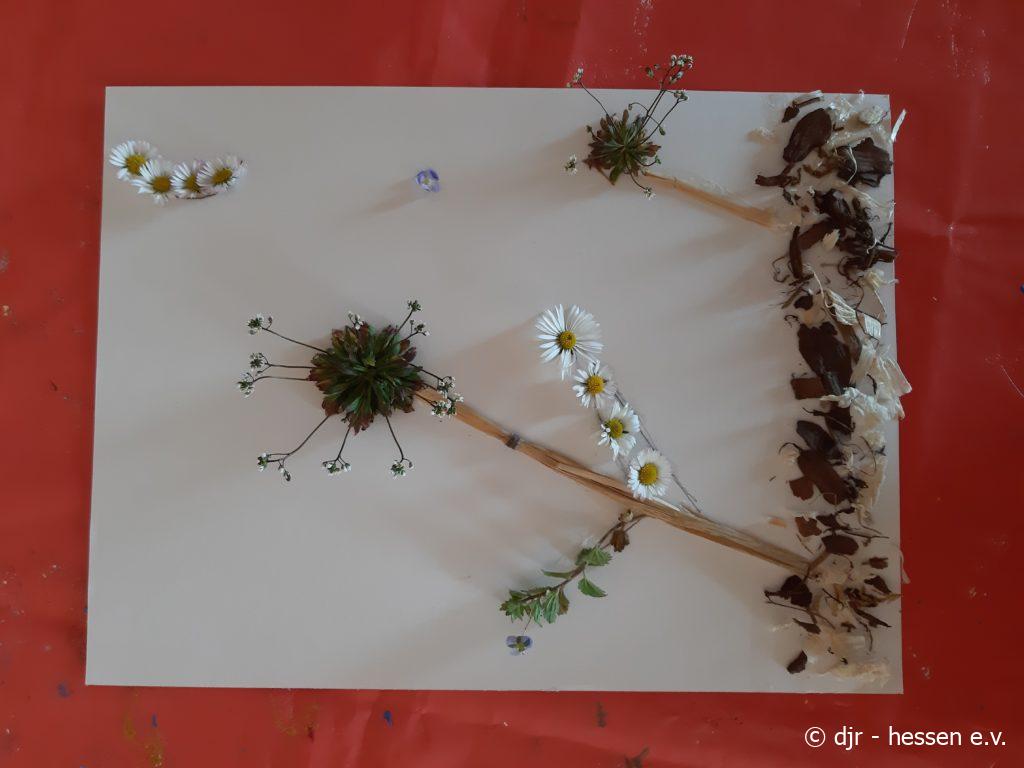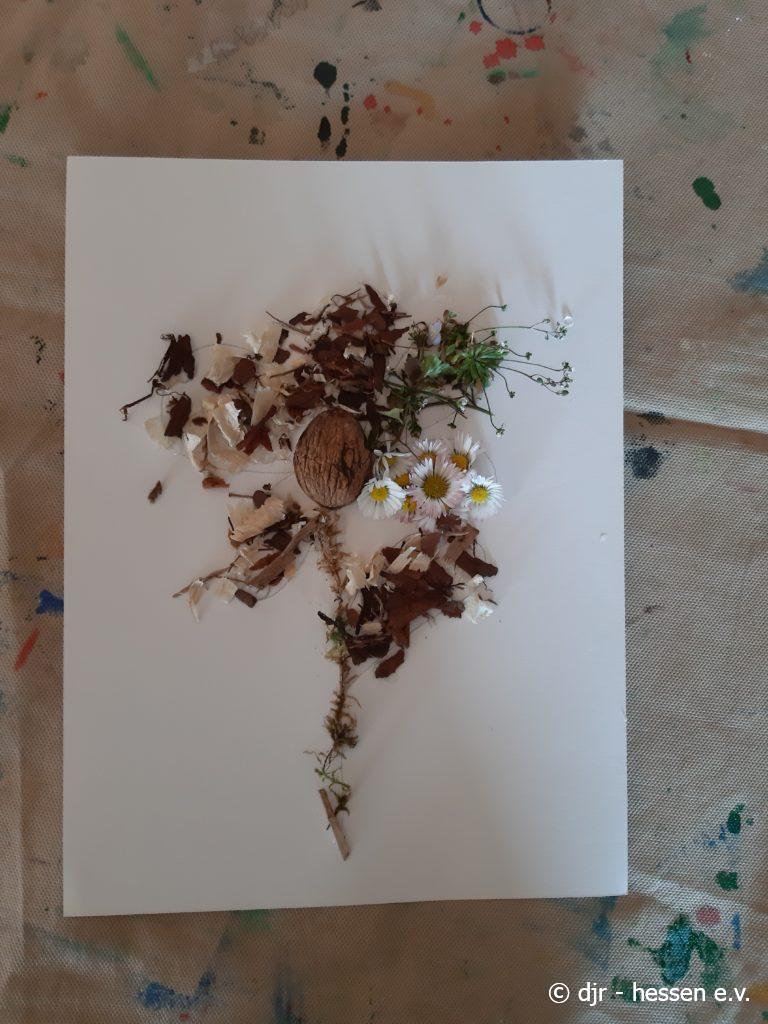An diesem sonnigen Tag sind wir mit den Kindern noch vor dem Malkurs nach draußen gegangen. Die Kinder haben für sich verschiedene Naturmaterialien gesammelt, aus denen sie schöne Bilder gestalten wollten. Die Ergebnisse sind wirklich einzigartig geworden-obwohl wir relativ ähnliche Materialien gesammelt haben, hat jedes Kind ein komplett anderes Bild gestaltet.