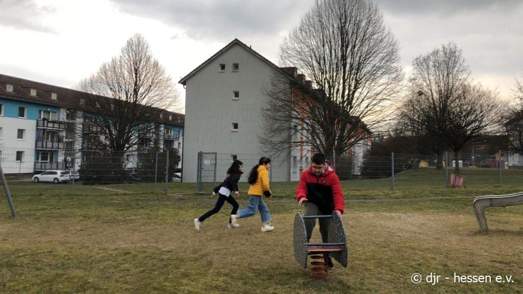 Jeden Tag genießen wir mit den Kindern etwa eine halbe Stunde an der frischen Luft. Gerade nach dem ständigen Maske-tragen ist diese Abwechslung sehr wichtig und die Kinder haben sehr viel Spaß dabei.