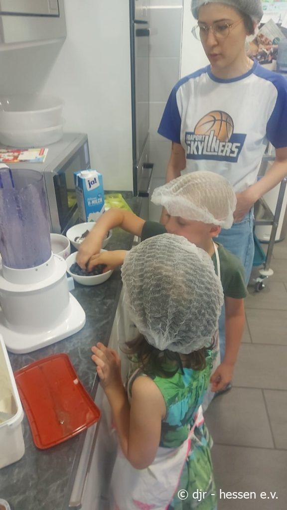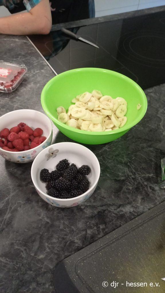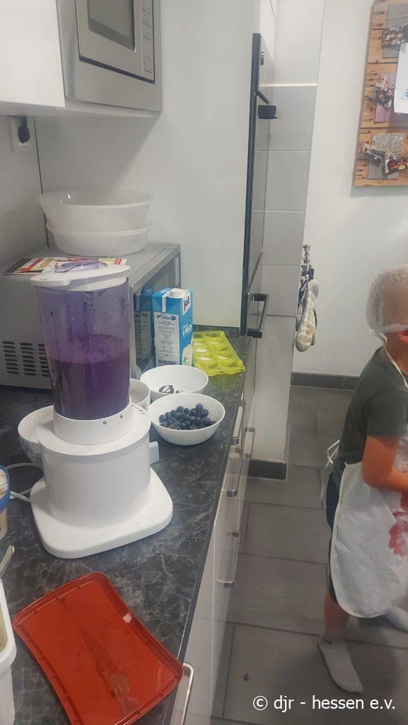 Das Wetter ist warm, draußen ist es fast schon zu heiß – der perfekte Anlass, um Sommersmoothies zu machen. Mit verschiedenen Beeren, Obst und Keksen konnten die Kinder sich ihre individuellen Smoothies mixen und so ihren Durst und die Hitze stillen.