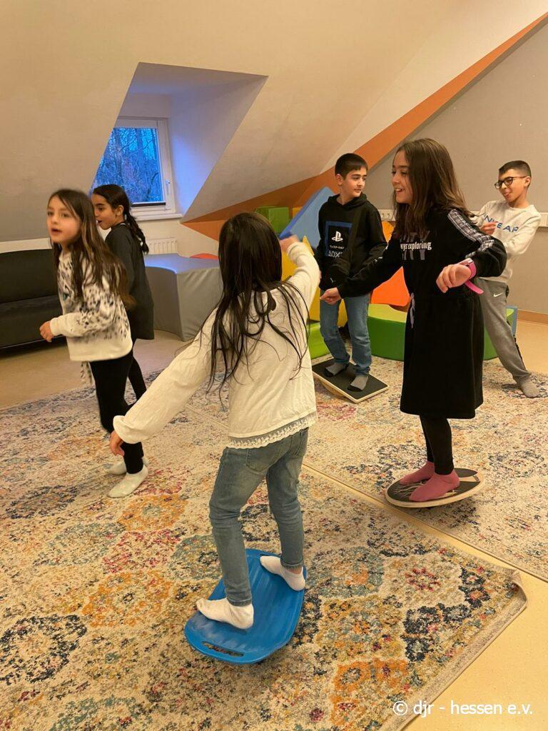Gerade in der kalten Jahreszeit ist ausgewogene Bewegung wichtig. Die Kinder spielen gerne Bewegungsspiele und bauen sich gerne schwierige Parcours, die sie dann auf Zeit bewältigen müssen. So wird nicht nur die Bewegung, sondern auch die Kreativität der Kinder gefördert.