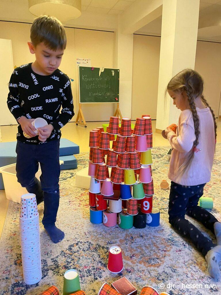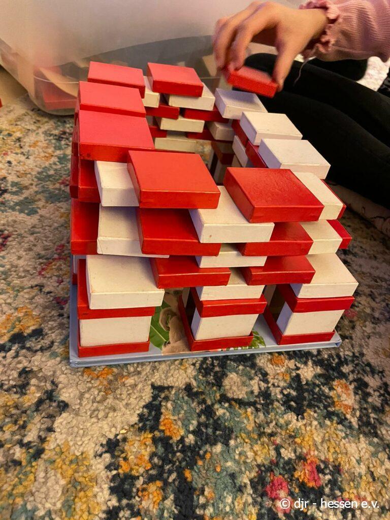 Heute ist die Kreativität der Kinder gefragt: Wer baut das ausgefallenste Gebäude? Und welche Materialien lassen sich dafür verwenden?