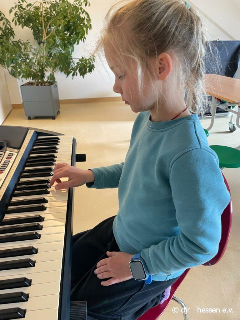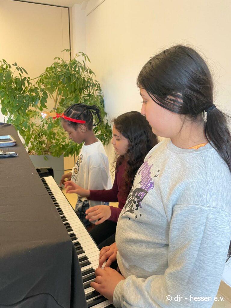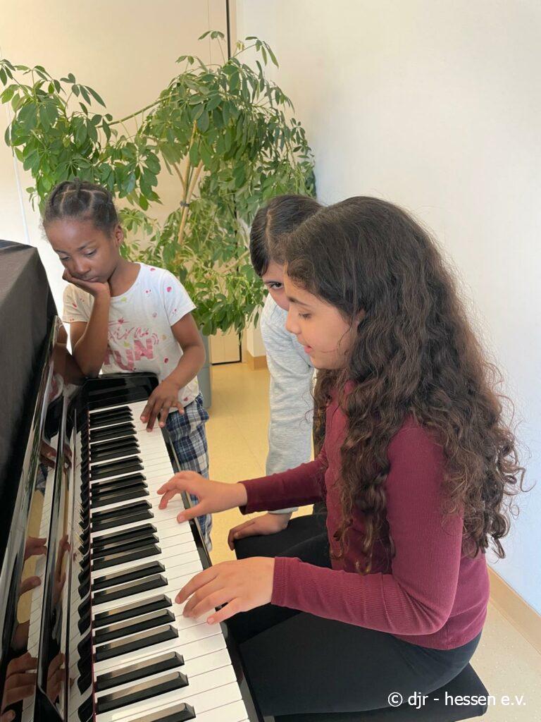 Die Kinder des Klavierkurses besuchen den Kurs weiterhin fleißig. Neben Musiktheorie lernen sie Klavierstücke und spielen diese gerne den anderen Kindern vor.
