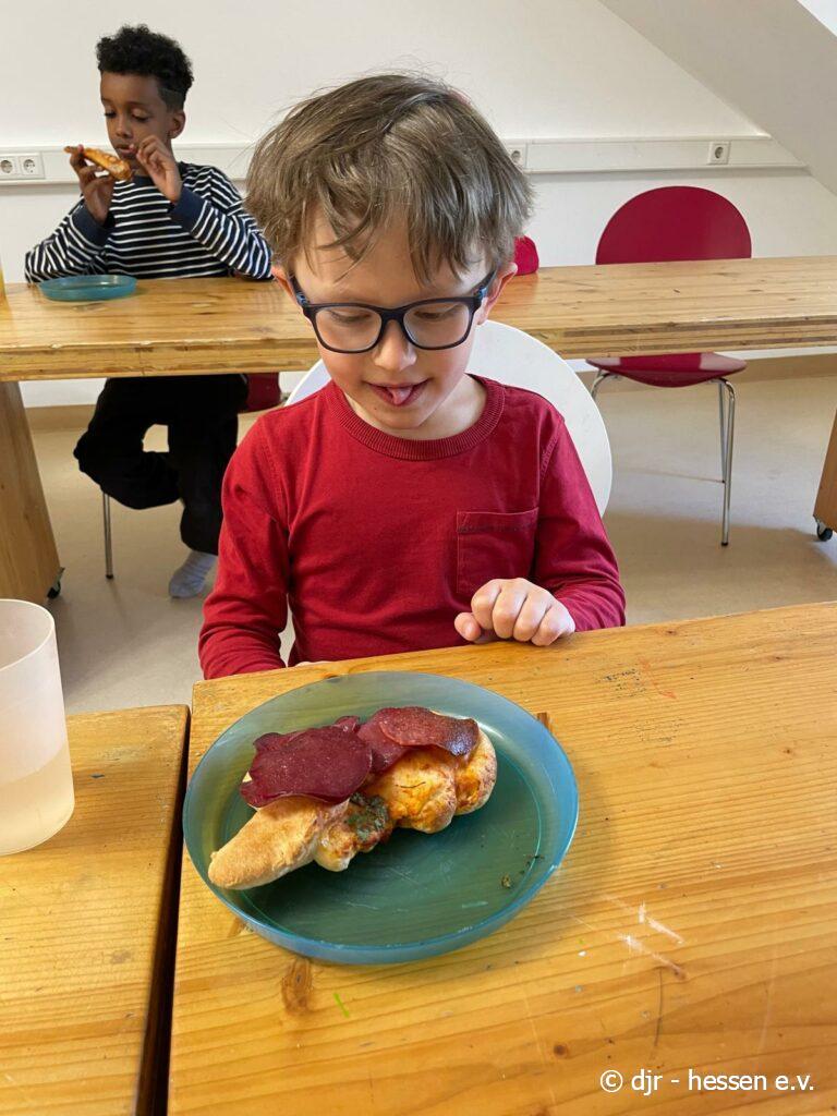 Die Kinder des Kochkurses backen heute tolle Pizzen. Es entstehen verschiedenste Tiere, die die Kinder auf verschiedensten Wegen zum Leben erwecken. So eine Pizza schmeckt direkt besser, als eine normale Pizza.