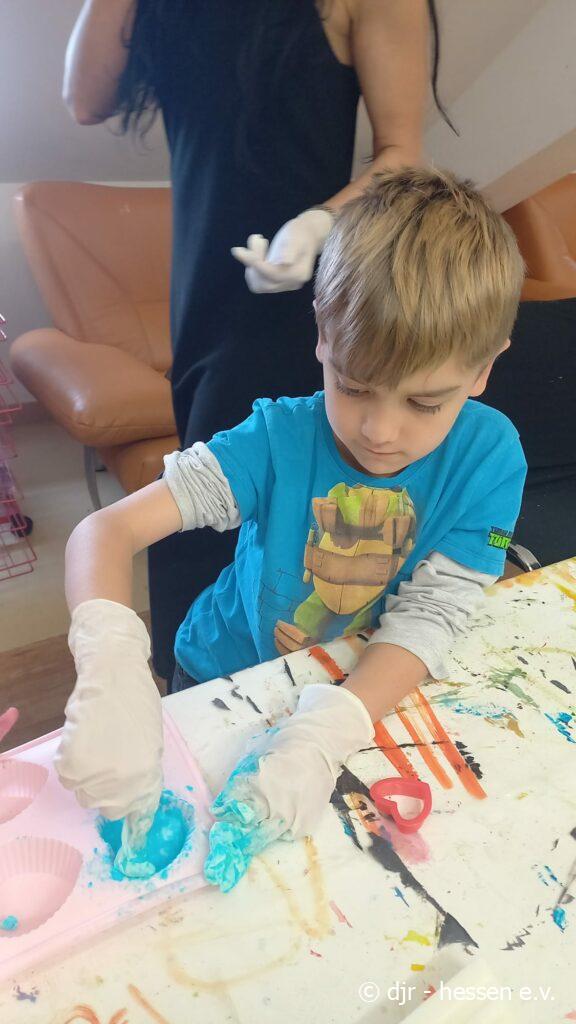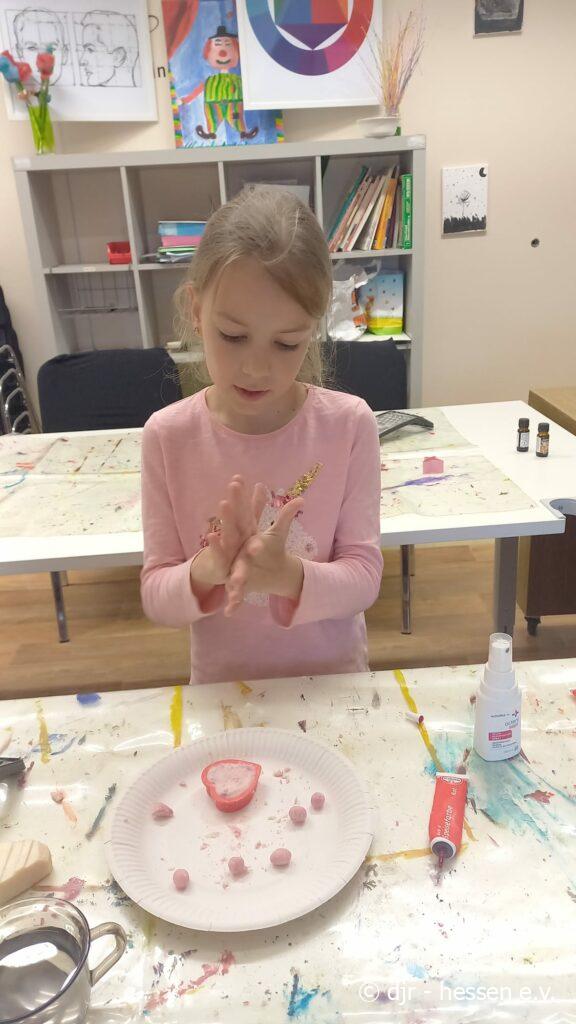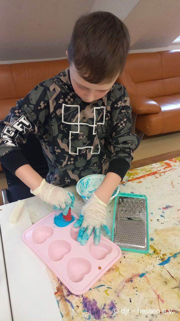 Die Kinder bereiten fleißig Überraschungen zum Mutter- und Vatertag vor. Neben Karten stellen sie dieses Jahr eigene Seife her, die sich perfekt als Geschenk eignet. Durch die selbstständige Auswahl von Farbe, Geruch und Form ist jede Seife einzigartig und besonders.
