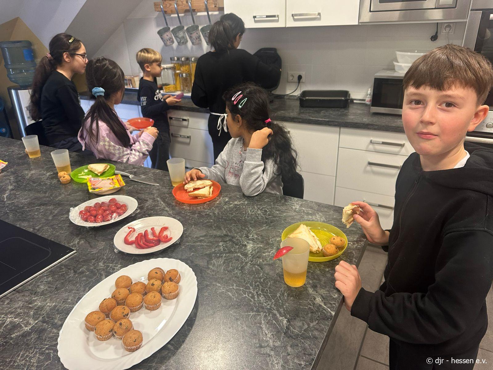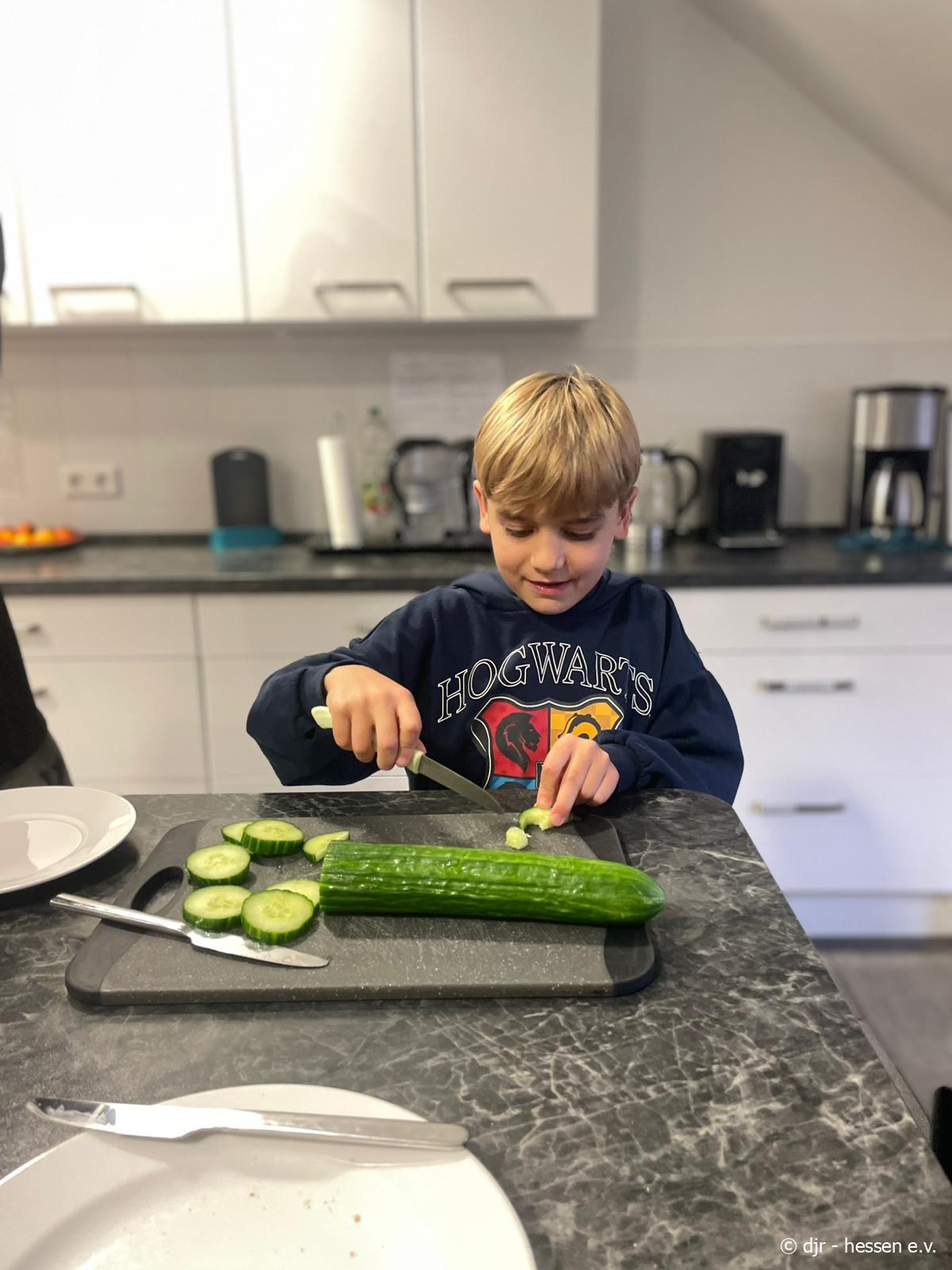 Regelmäßig treffen wir uns in der Küche und bereiten gemeinsam mit den Kindern leckere Gerichte zu. So essen die Kinder auch wirklich das, was ihnen schmeckt und lernen außerdem einfache Rezepte kennen.
