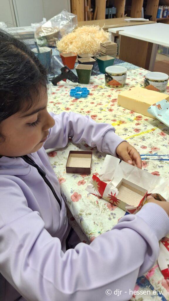 Heute stellen die Kindern aus alten Materialien Neues her: Aufbewahrungsboxen, Spielzeug, Weihnachtsgeschenke… Müll ist nicht gleich Müll und kann vielseitig weiterverwendet werden, wenn man kreativ genug ist.