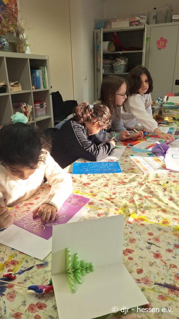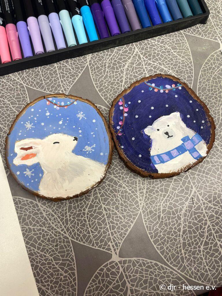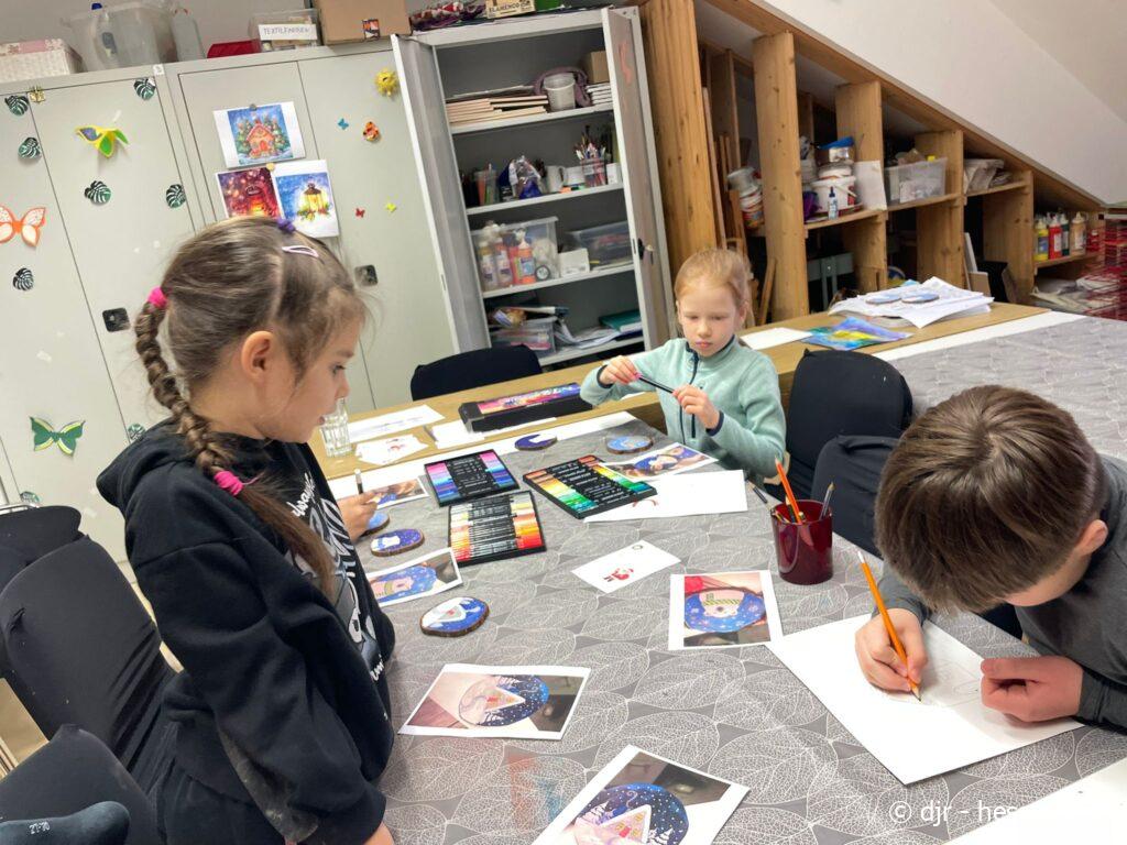 Passend zur Vorweihnachtszeit malen die Kinder tolle weihnachtliche Bilder und Ornamente und basteln Karten. Die Basteleien der Kinder eignen sich auch perfekt als Geschenk.