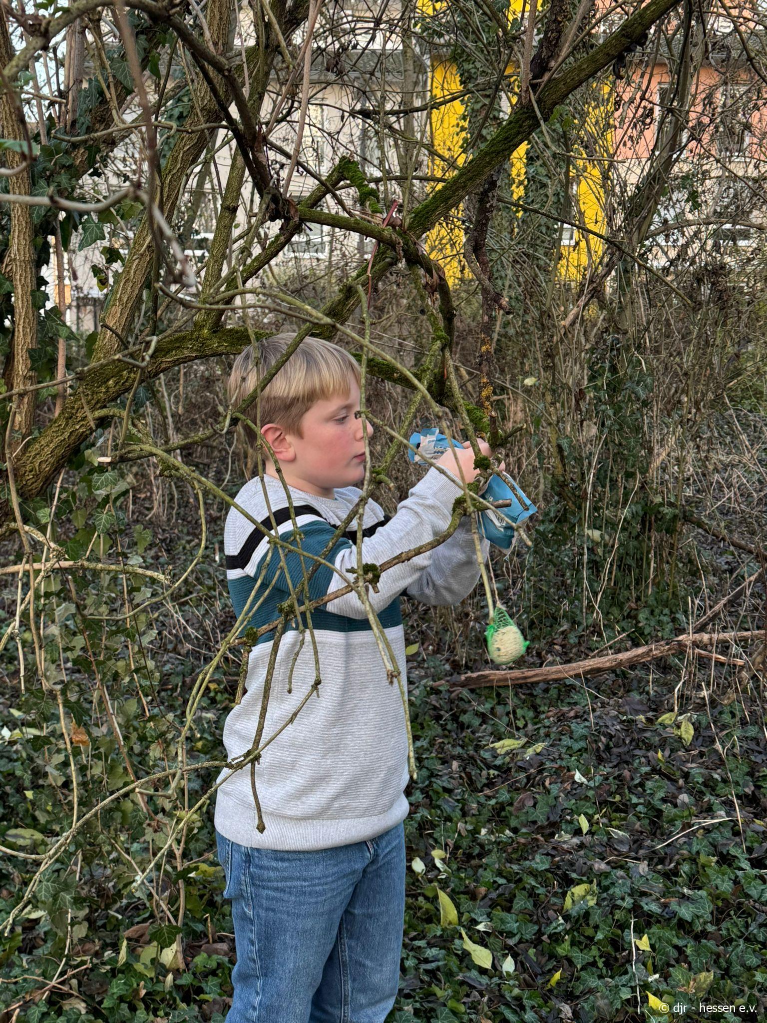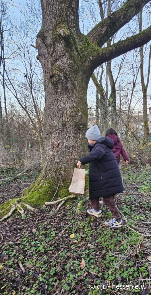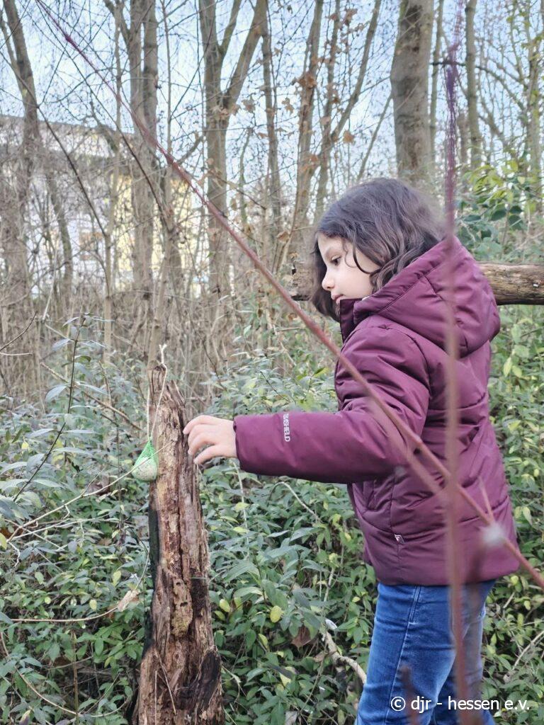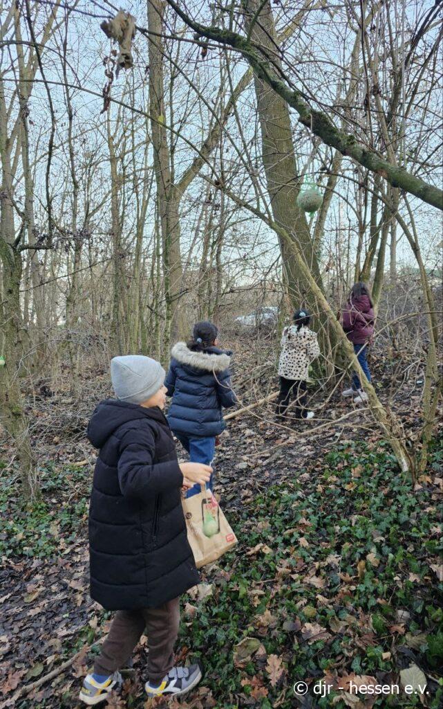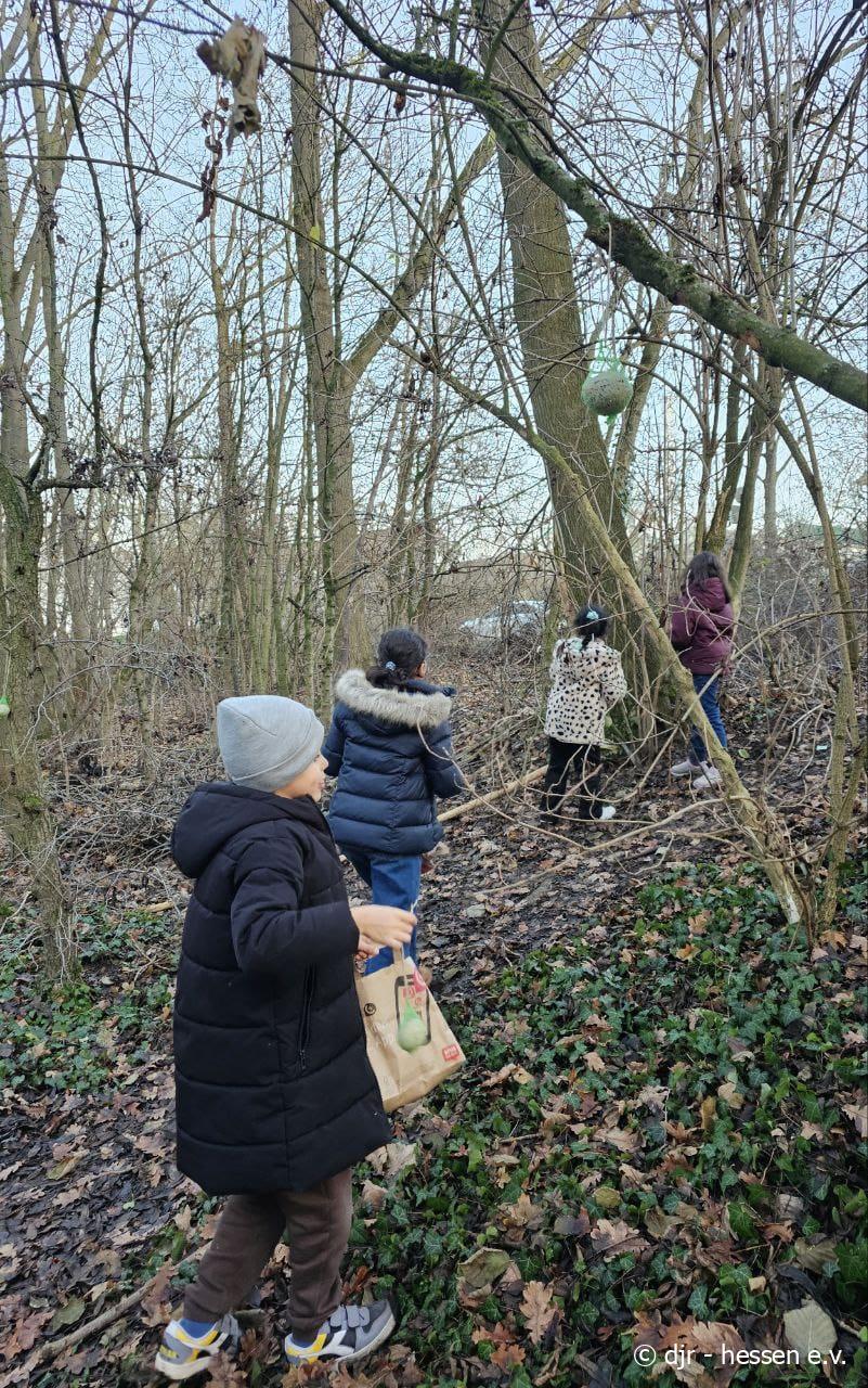In der kalten Jahreszeit haben es Tiere nicht leicht Futter zu finden. Die Kinder machen es sich deswegen zur Aufgabe, im Stadtteil Vogelfutter zu verteilen.