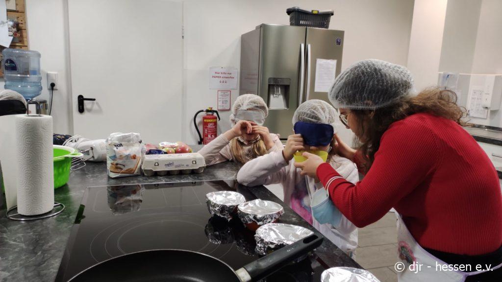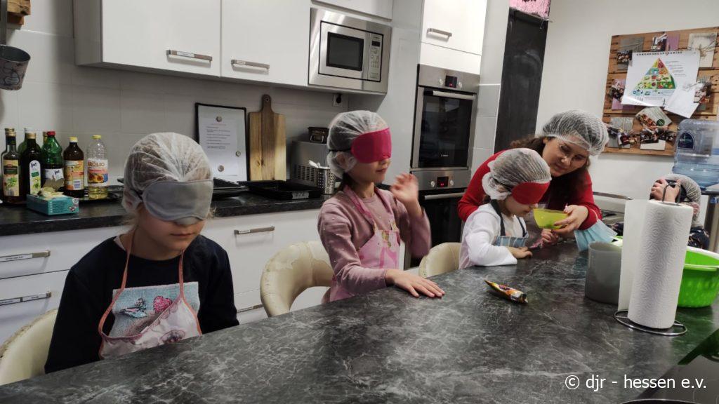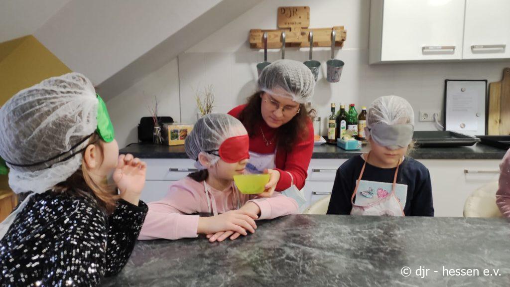 Die Kinder haben heute die Möglichkeit, ihre Sinne zu testen. Gar nicht so einfach, alleine über den Geruchssinn herauszufinden, was in der Schüssel ist…