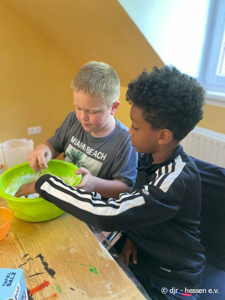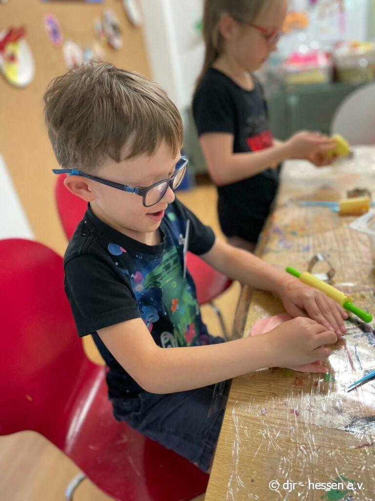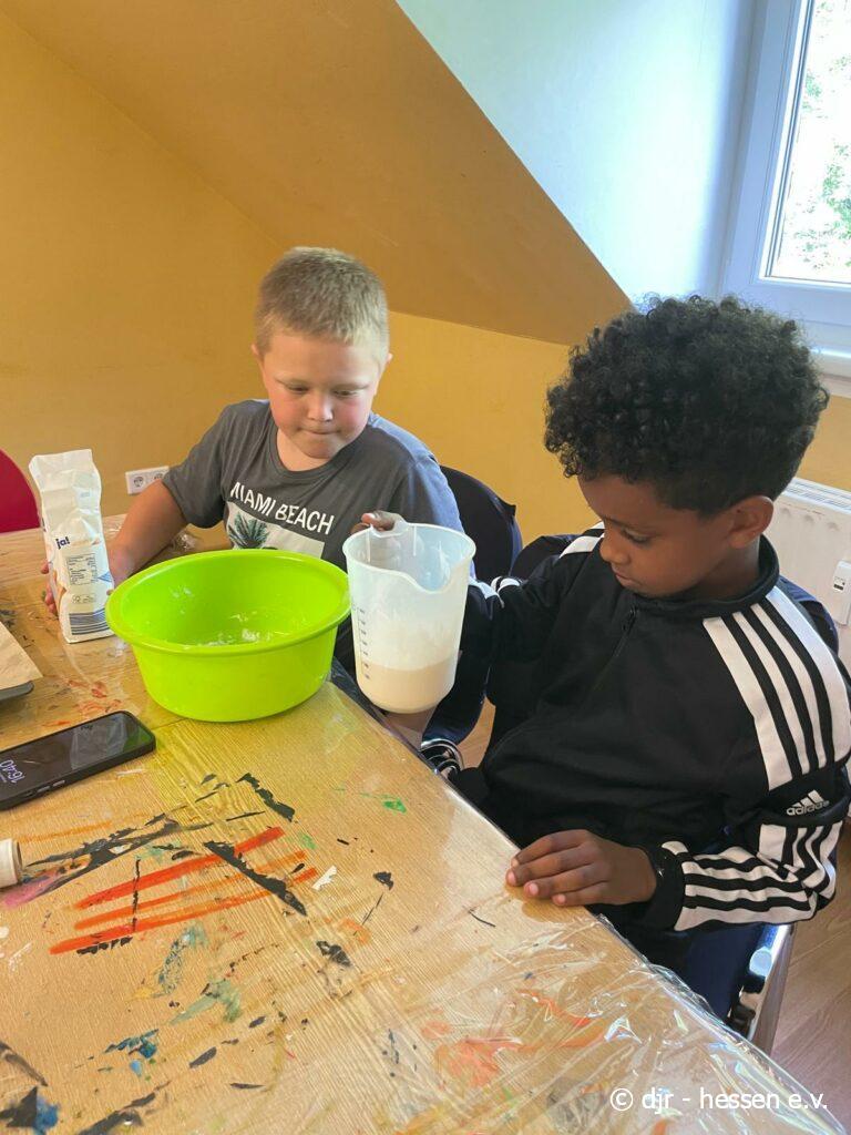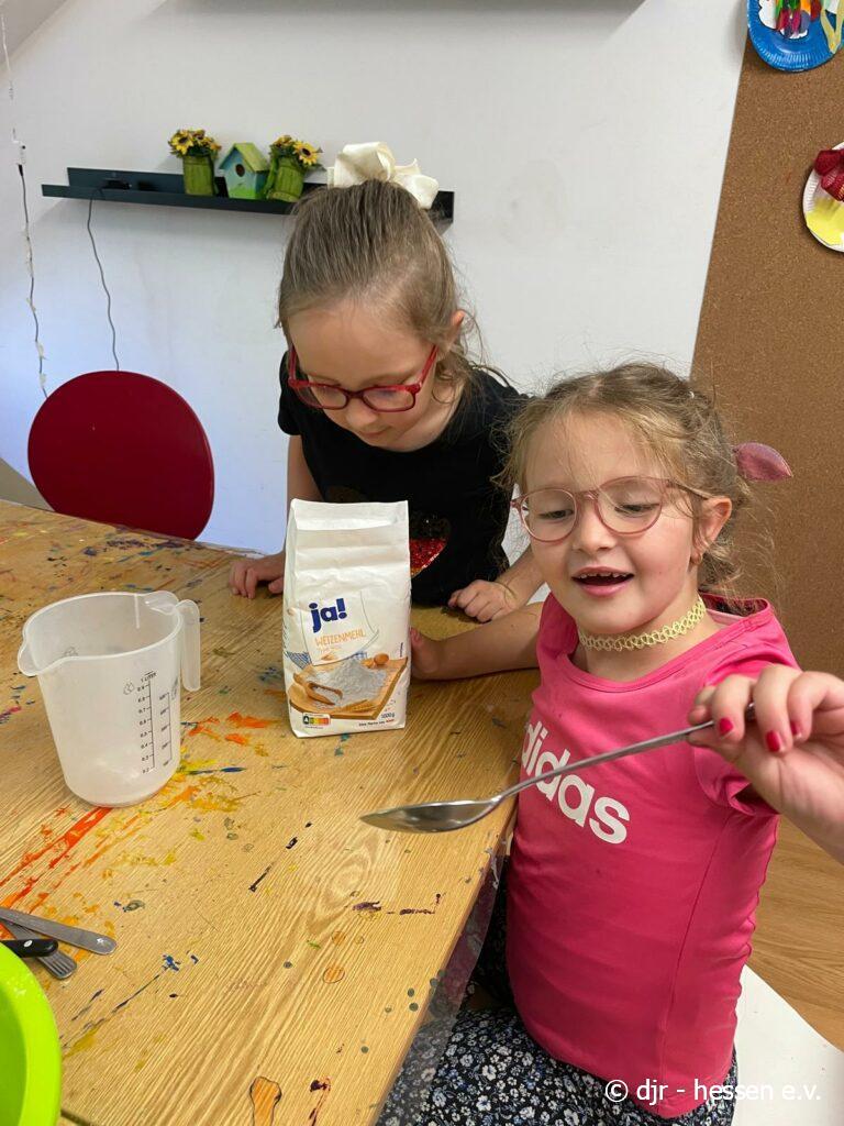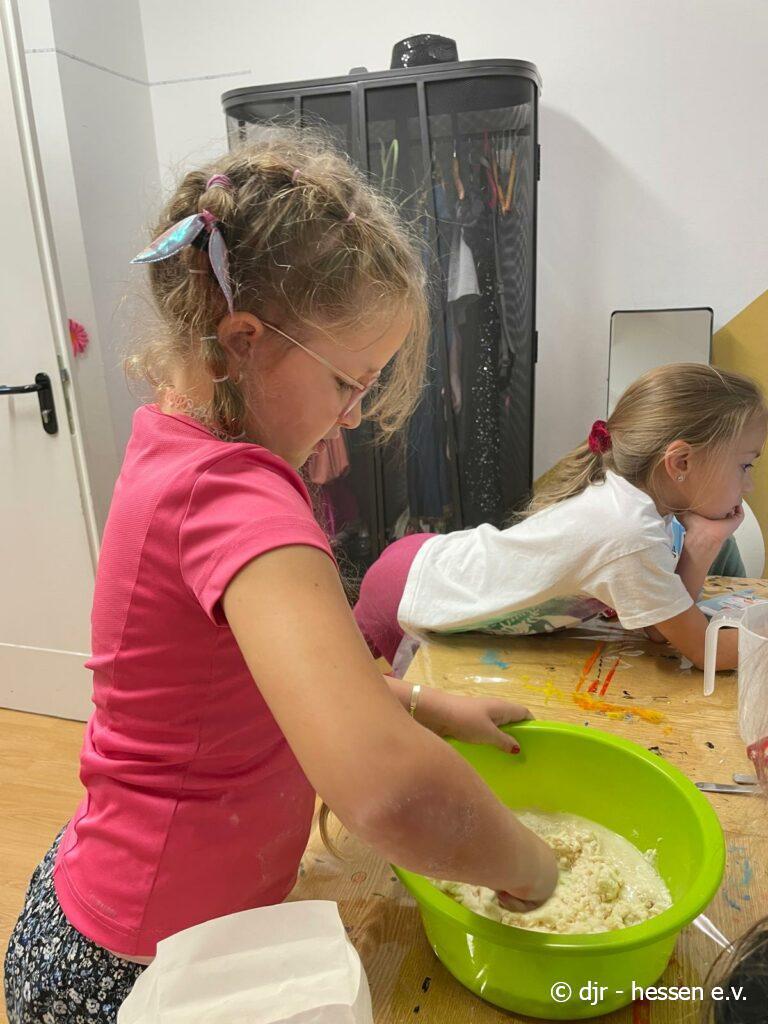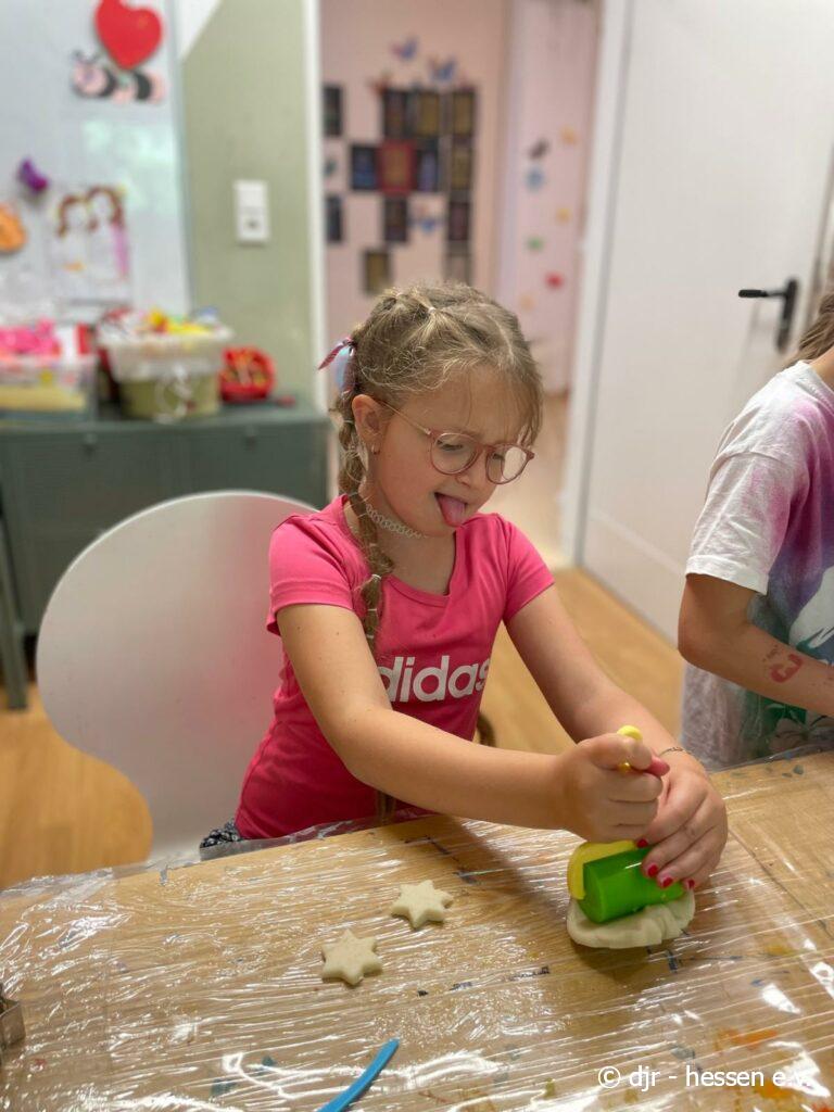 Die Kinder stellen heute ihren eigenen Salzteig her und kneten daraus verschiedene Anhänger und Kunstwerke. Nicht nur Kreativität und Feinmotorik werden geschult, die Kinder lernen auch ein neues Medium zum Basteln kennen.