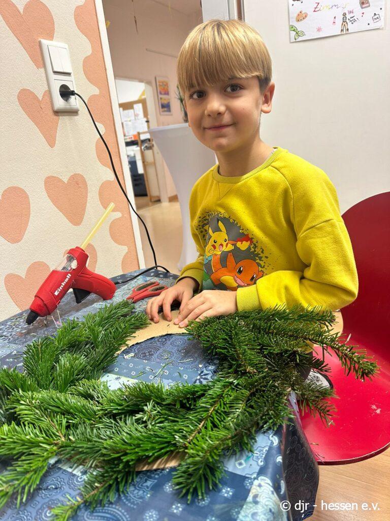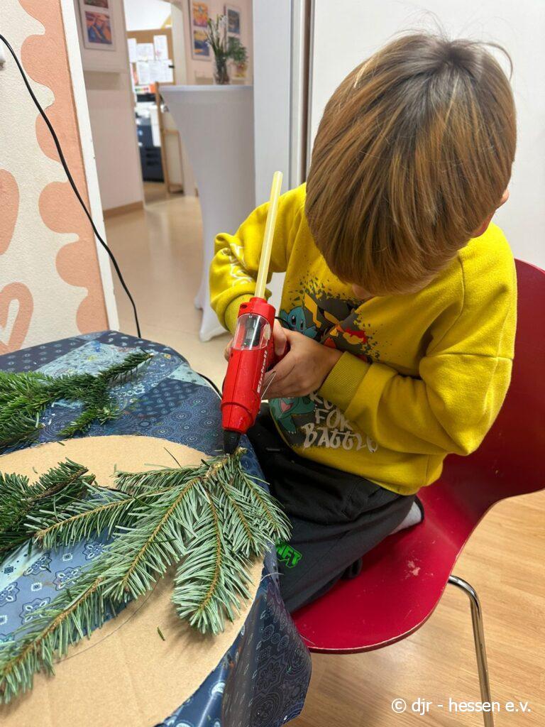Fleißig basteln die Kinder einen Adventskranz für den Kinderclub. Woche für Woche zünden wir nun gemeinsam eine weitere Kerze an, bis zum Weihnachtsfest.