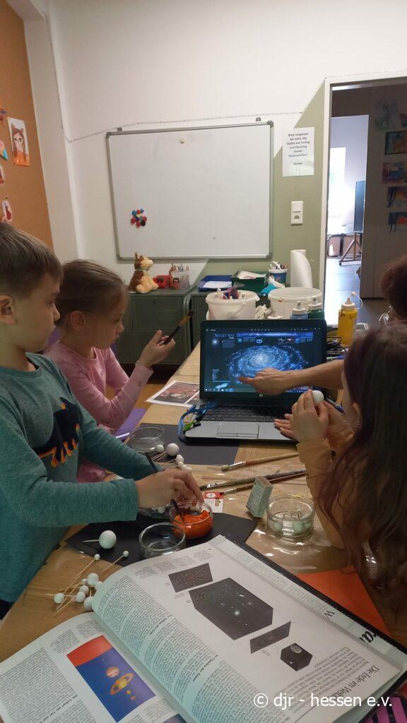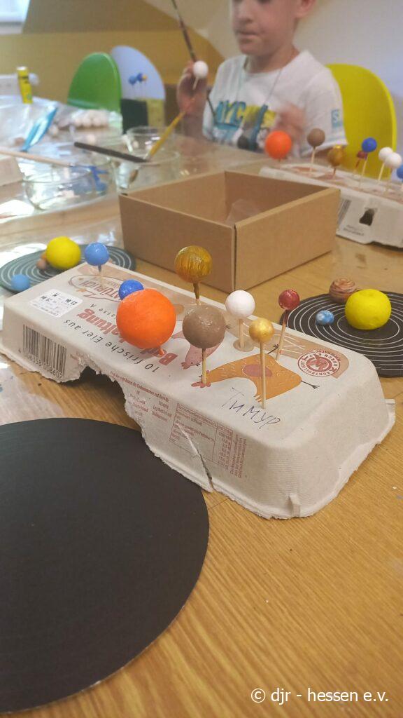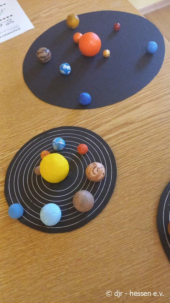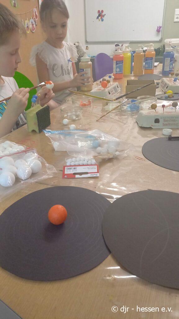 Die Kinder basteln sich heute Sonnensysteme, um die Planeten und ihre Umlaufbahnen besser zu verstehen.