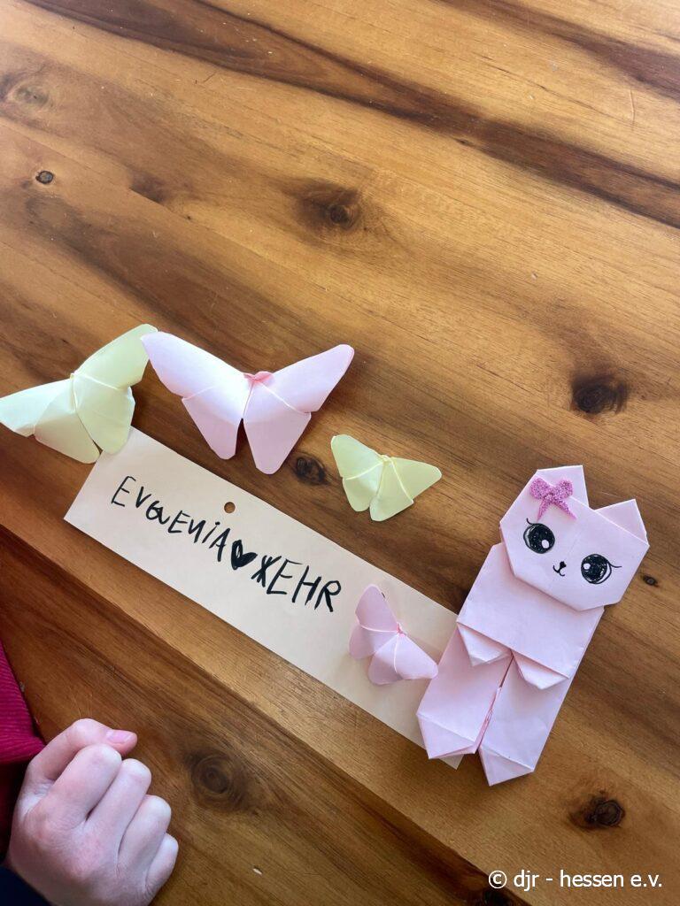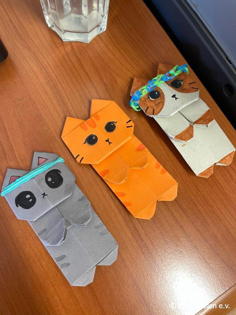 Die Kinder lernen heute verschiedene Falttechniken kennen und gestalten so verschiedene Tierchen. Nicht nur erfordert dies viel Konzentration und Fingerspitzengefühl, es ist auch motivierend für die Kinder, aus einem Stück Papier ein Tierchen herzustellen.
