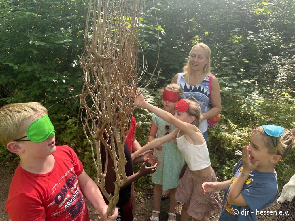 Heute haben die Kinder das Stadtteilwäldchen erkundet: Was ist ihnen dabei begegnet und was haben sie mit verbundenen Augen überhaupt erkannt? Auf ihre Augen konnten sie sich schonmal nicht verlassen…
