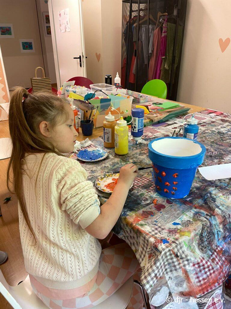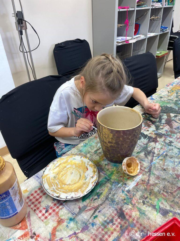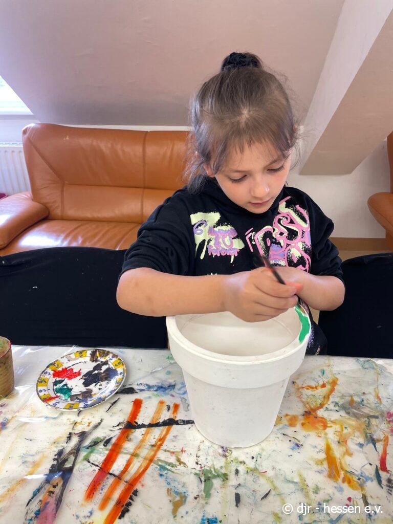 Die Kinder bemalen ihre eigenen Blumentöpfe und pflanzen anschließend Samen an. So haben sie die Möglichkeit, sich im gärtnern auszuprobieren und die Pflanzen über die nächsten Wochen hinweg zu pflegen.
