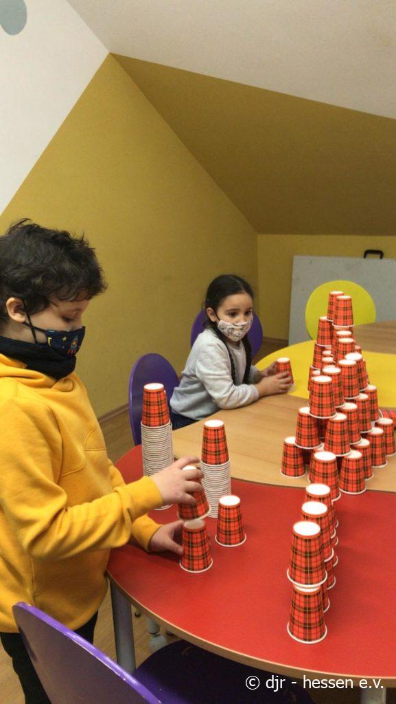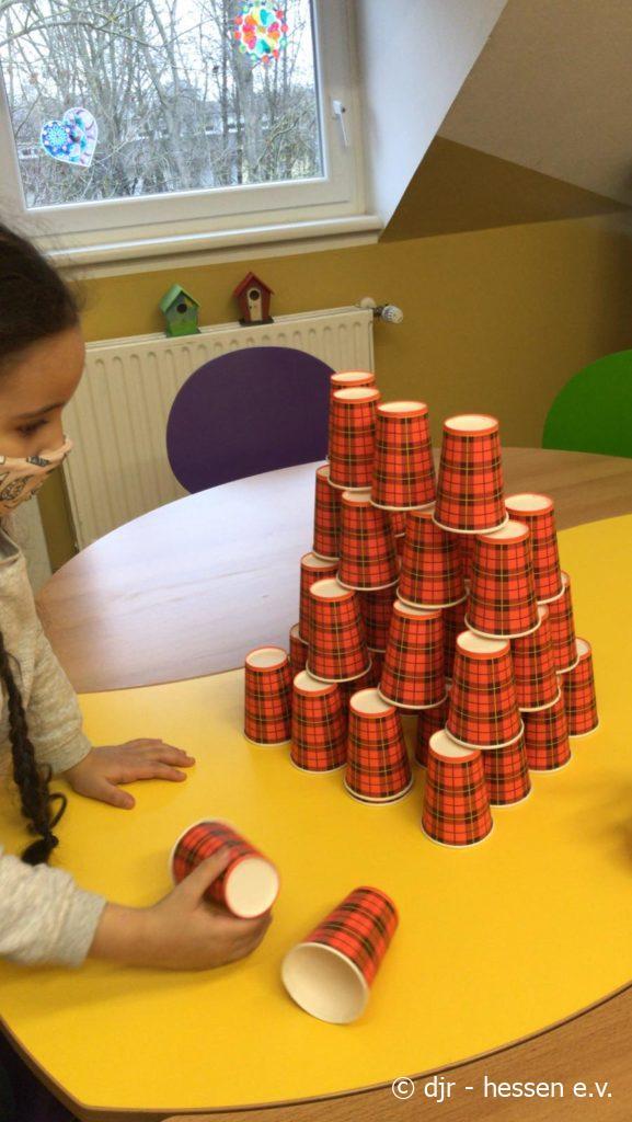 Aus wenigen Materialien lässt sich hier eine Beschäftigung schaffen, mit der sich die Kinder gerne zwischendurch beschäftigen. Spielideen gibt es viele: wer baut den höchsten Turm? Wer baut ihn am schnellsten? Wer baut den stabilsten Turm?