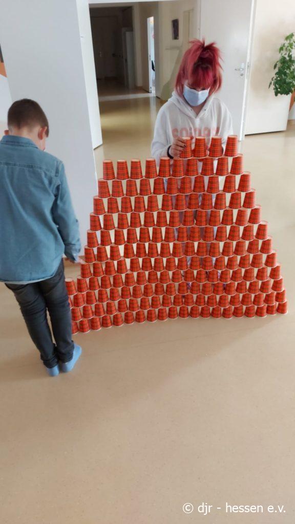 Es braucht nicht viel Material, um sich zu beschäftigen… Unsere Kinder haben mit einigen Papierbechern Spaß. Wie hoch der Turm wohl werden kann?