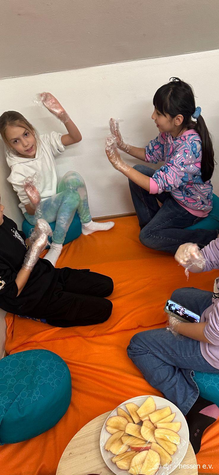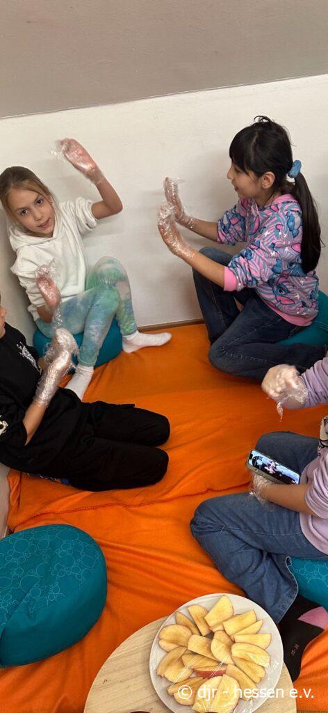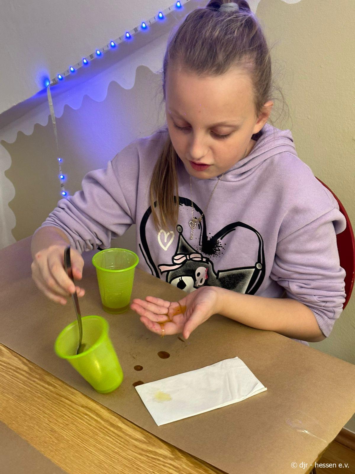 In der Beauty-AG dreht sich alles rund um Handpflege. Die Kinder lernen über die wohltuende Wirkung von Olivenöl und stellen gemeinsam Handmasken aus diesem her.