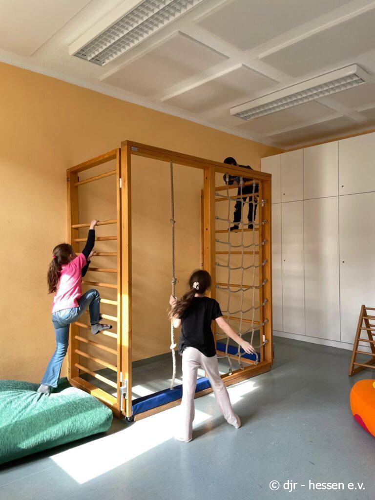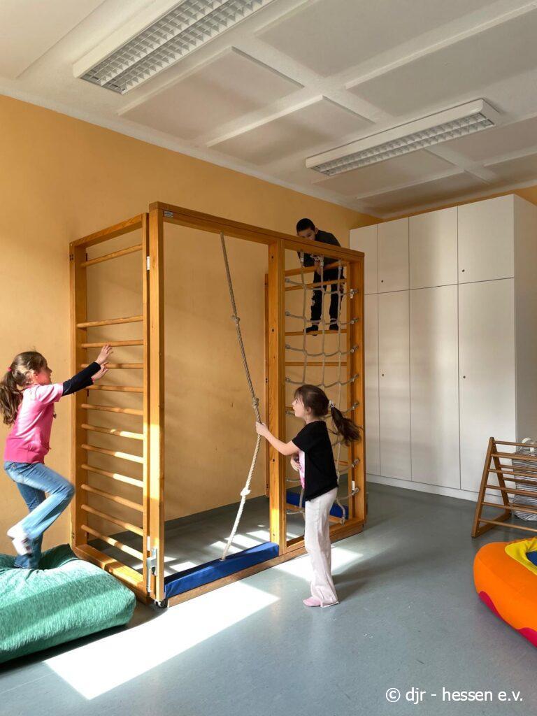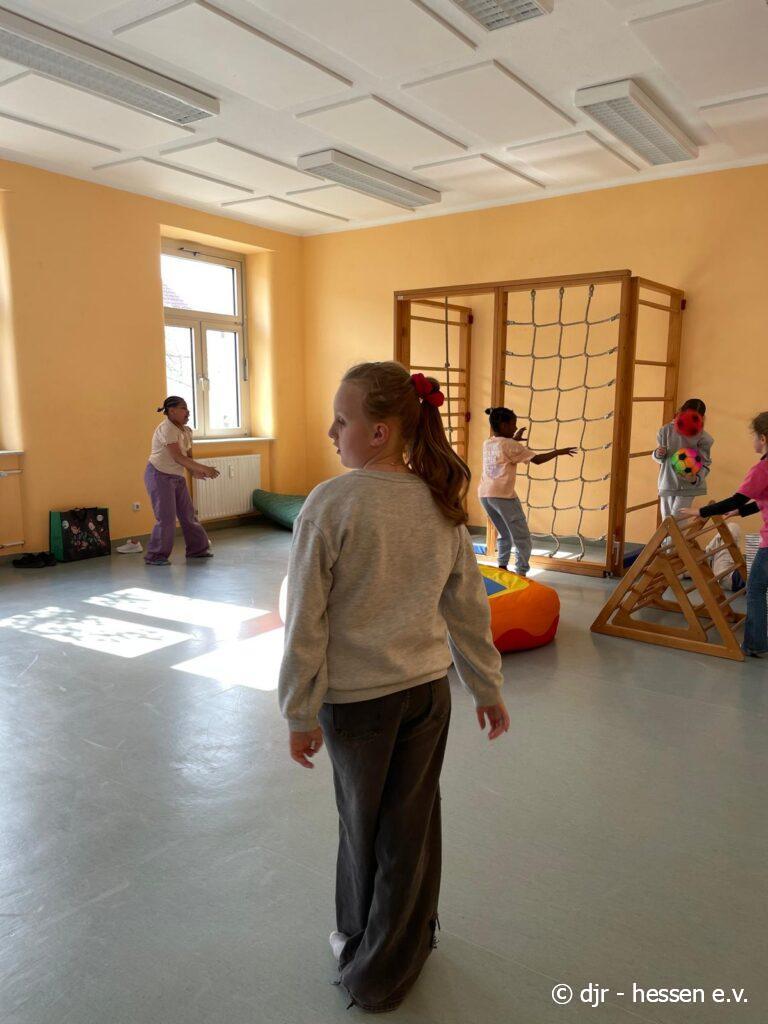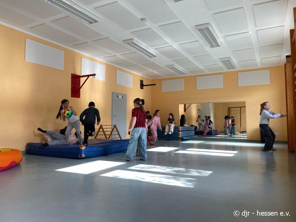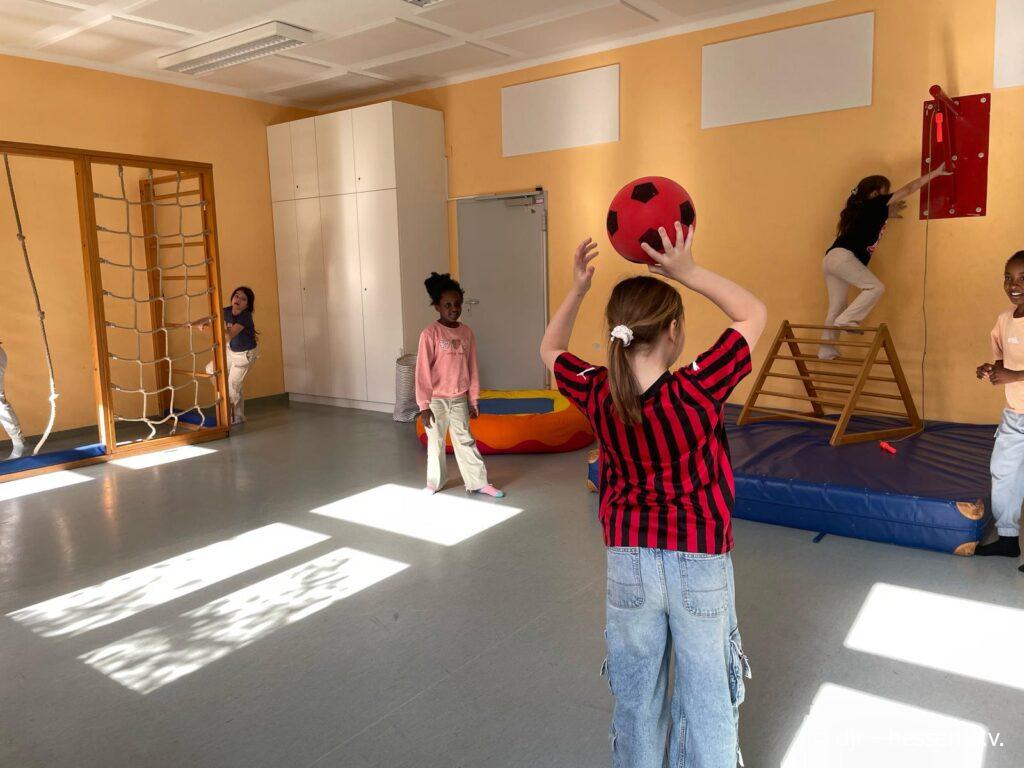 Hier können sich die Kinder austoben: Von Fang- und Ballspielen über Parcours ist hier alles dabei, was die Kinder gerne spielen. All ihre Energie können sie hier in der Halle auslassen und sich nach Belieben bewegen.