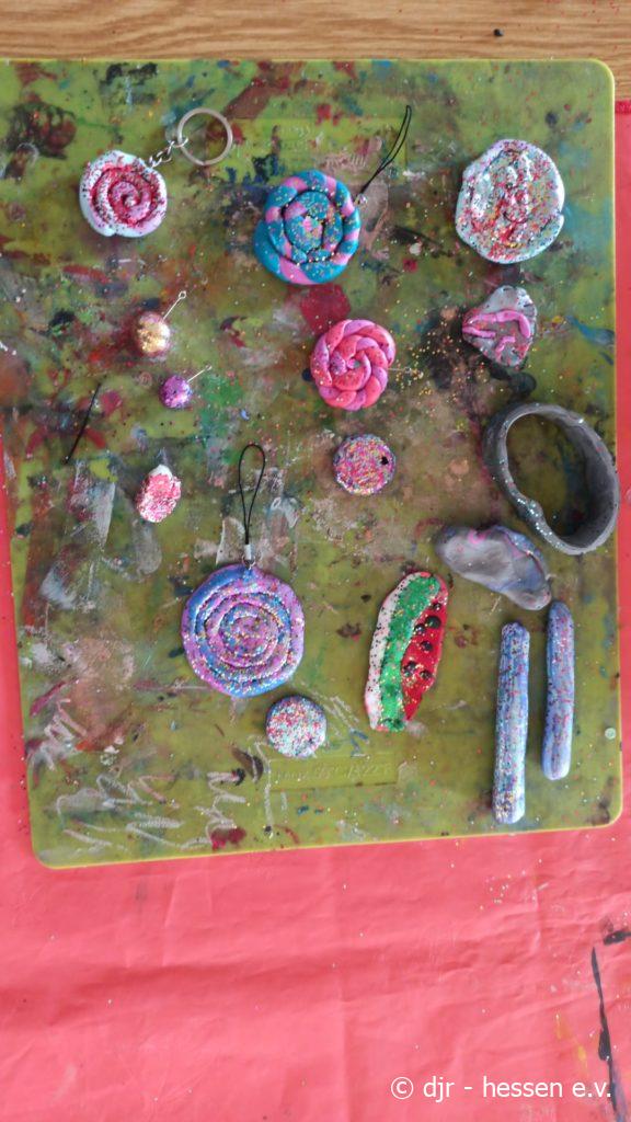 Heute waren wir mal wieder sehr kreativ: aus buntem Fimo haben wir die verschiedensten Schmuckstücke erschaffen. Von Anhängern über Armbänder und Ringe war für jeden etwas dabei. Solchen Schmuck findet man kein zweites Mal auf der Welt!