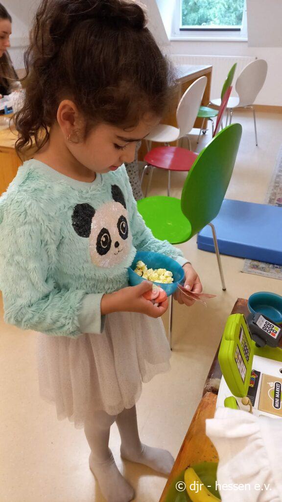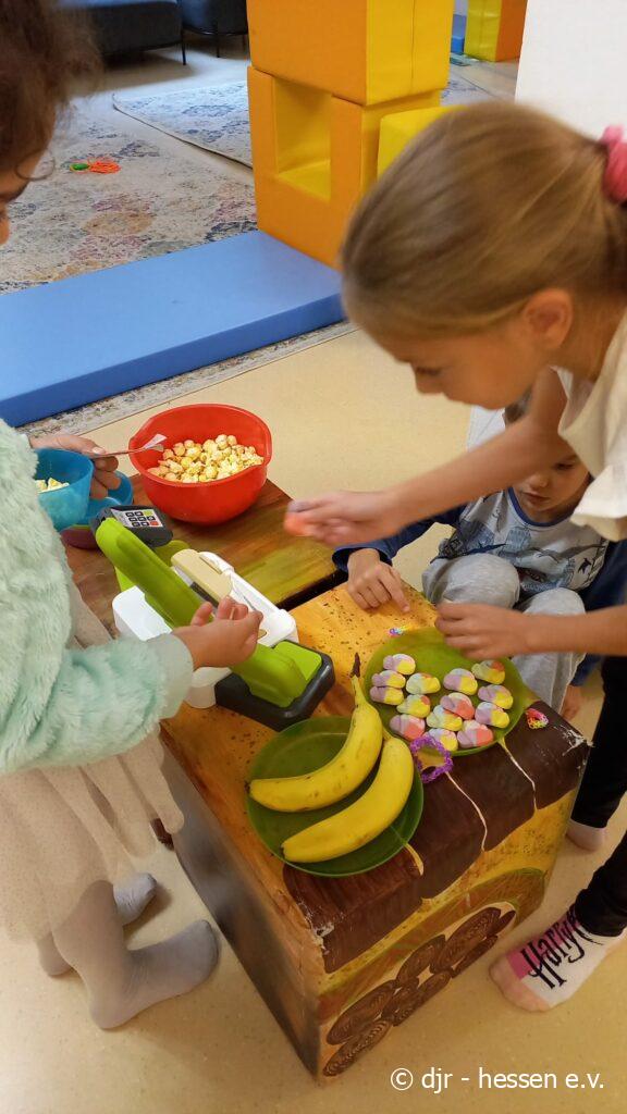 Im Kinderclub eröffnen sie einen Kiosk, wo sich die Kinder mit (Spiel-)Geld unterschiedlichste Leckereien kaufen können. So lernen sie beim Spielen den frühen Umgang mit Geld.