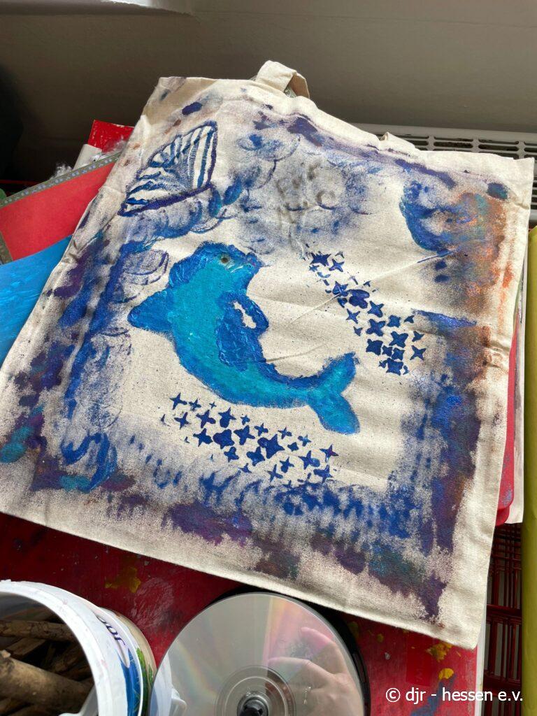 Die Kinder haben ihre eigenen Stofftaschen mit Meeresthematik gestaltet. Neben Inspirationen haben sie auch ihre eigenen Ideen in die Gestaltung einfließen lassen und so alles ganz nach ihrem Geschmack gestaltet.