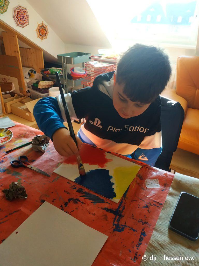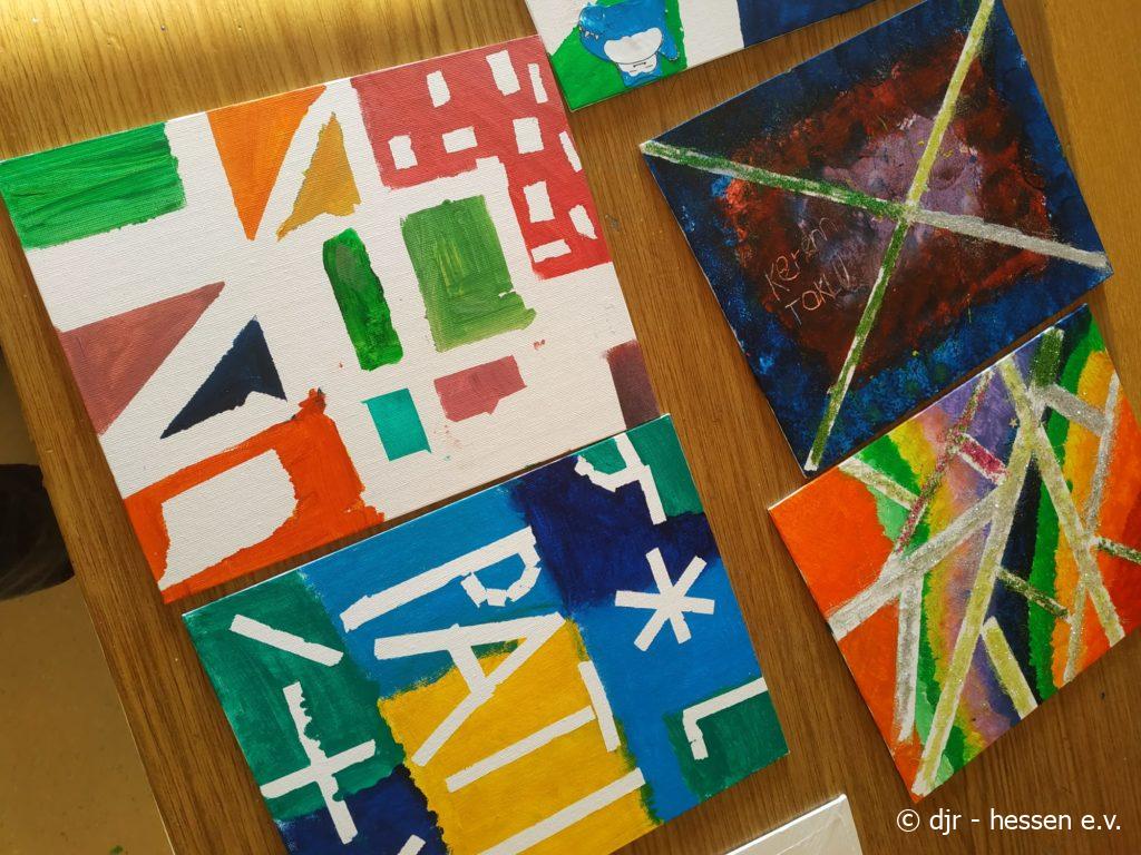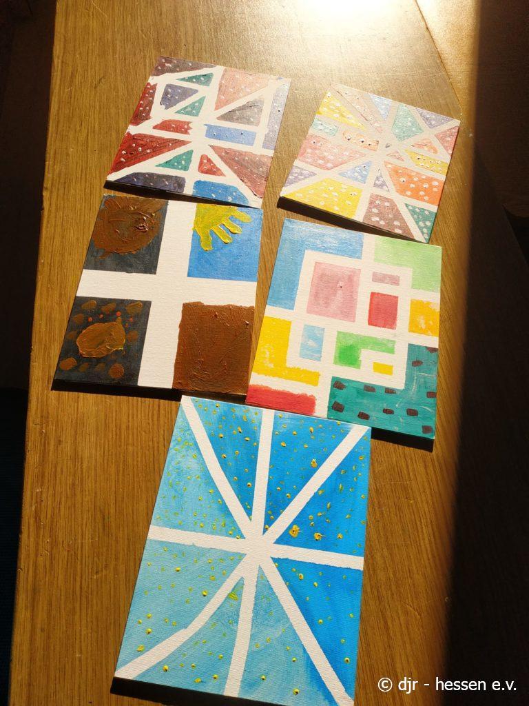 Es ist mal wieder an der Zeit, die Leinwände in unserem Treppenhaus auszutauschen. Dieses Mal haben wir uns entschieden, etwas abstrakte Kunst mit den Kindern zu machen, die in bunten Farben unseren Eingangsbereich verschönern soll.