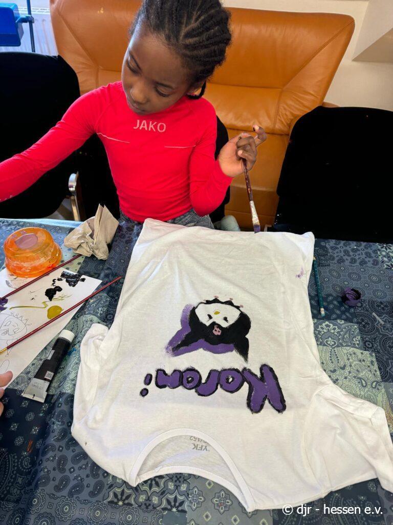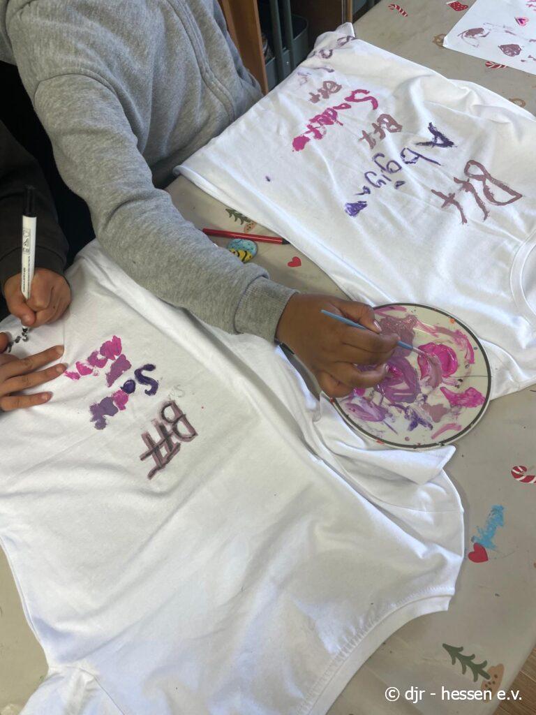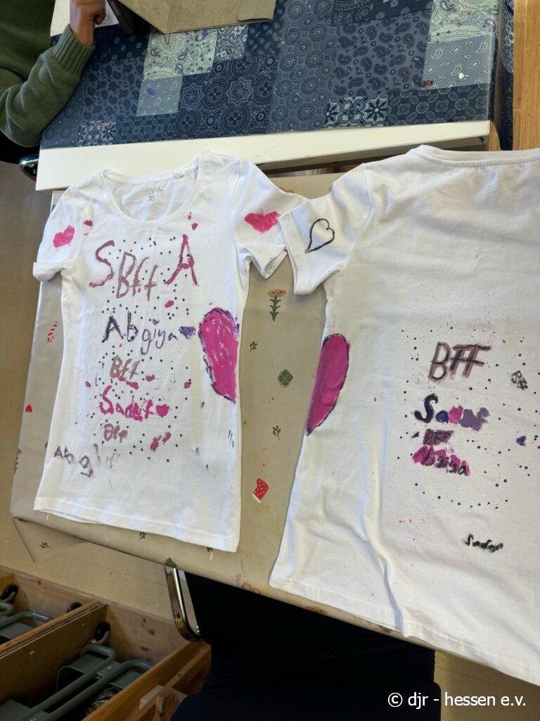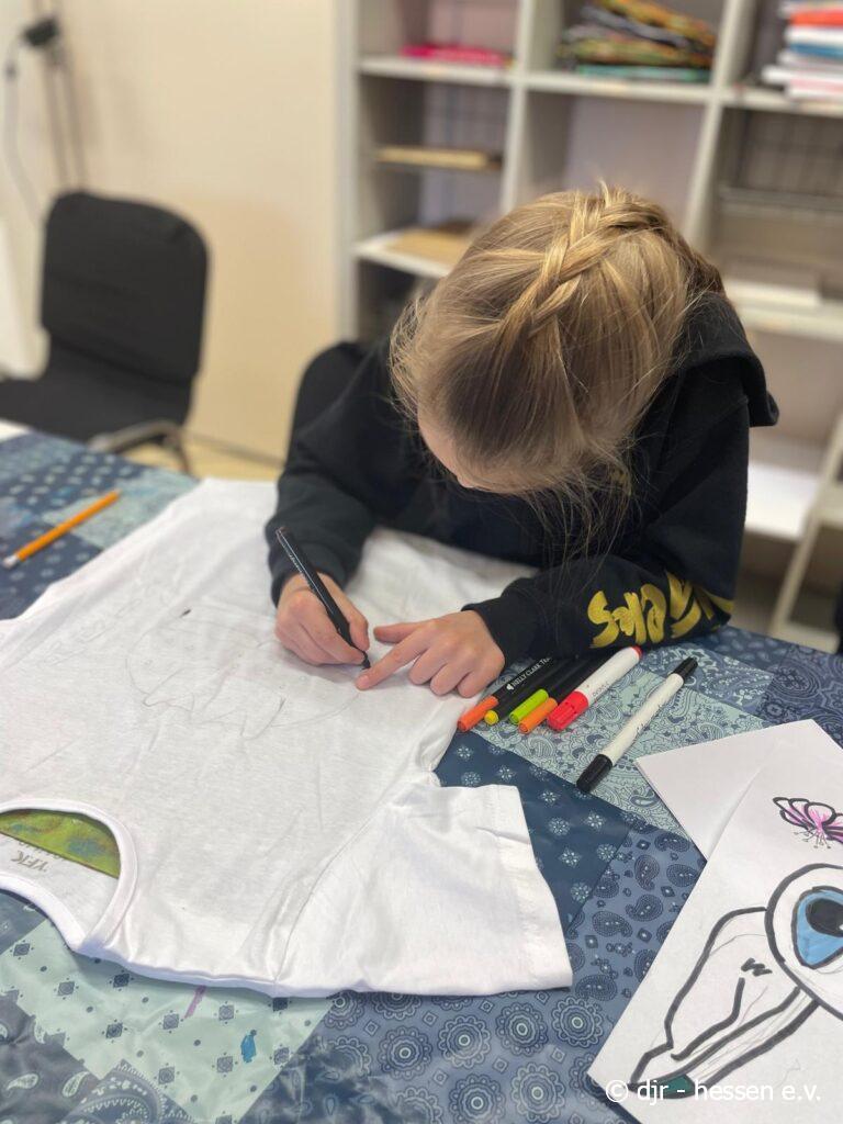 Das weiße T-Shirt ist die Leinwand der jungen Designer:innen. Nach Belieben können sie ihr persönliches Kleidungsstück visualisieren und gestalten. Von Charakteren, Bildern bis hin zu Schriftzügen ist hier alles dabei.