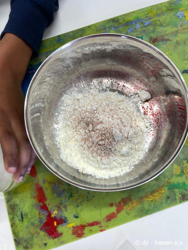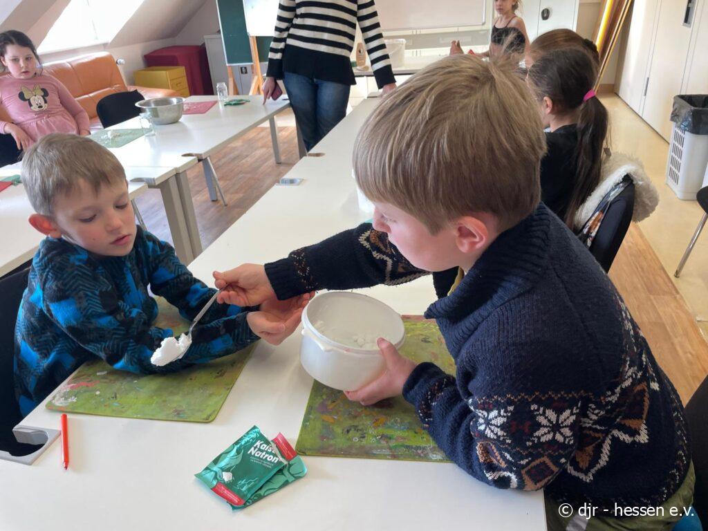 Die Kinder lernen heute durch Experimente die Fähigkeiten von Natron kennen. Sie können heute beobachten, tasten und hören.
