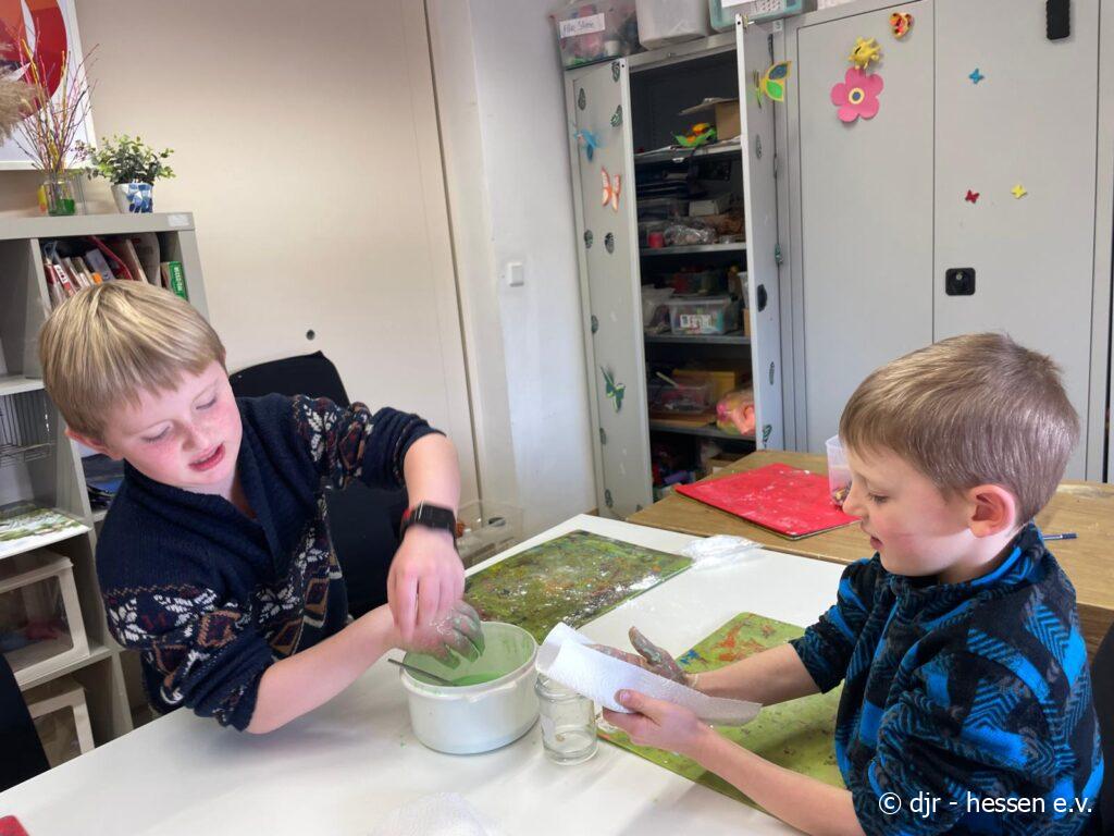 Die Kinder in der Mal-AG sind wie immer kreativ: Es entstehen einzigartige und individuelle Kunstwerke, bei denen die Kinder ihr Können beweisen können und gleichzeitig viel Spaß haben.