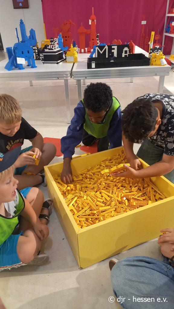 Heute ist die Kreativität der Kinder gefragt: Bei der Legobaustelle können sie futuristische Bauprojekte zum Leben erwecken. Ob in Teams oder alleine, die Kinder haben hier ihren Spaß und können sich ganz der Bautätigkeit widmen.