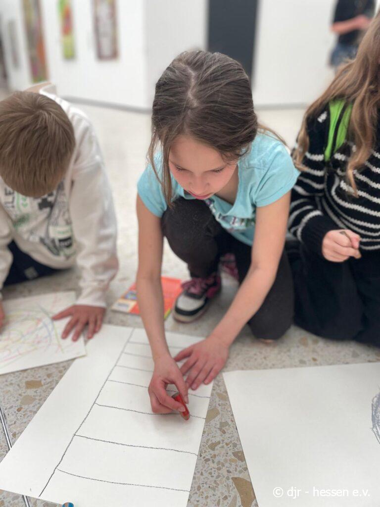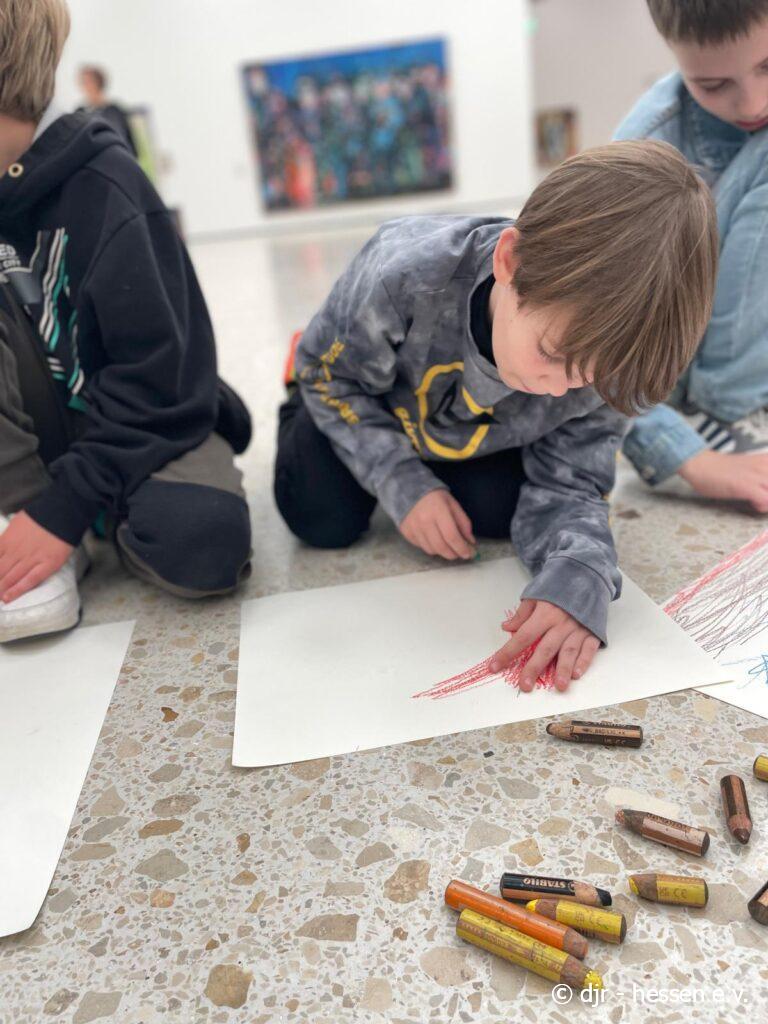 Heute wird es kreativ: Die Kinder schauen sich die Ausstellung der Gegenwartskunst an und gestalten anschließend ihre Zukunftshäuser. So wie die Künstler der Ausstellung werden auch den Kindern keine Grenzen gesetzt, die Häuser entstehen ganz nach ihren persönlichen Vorstellungen und Wünschen.