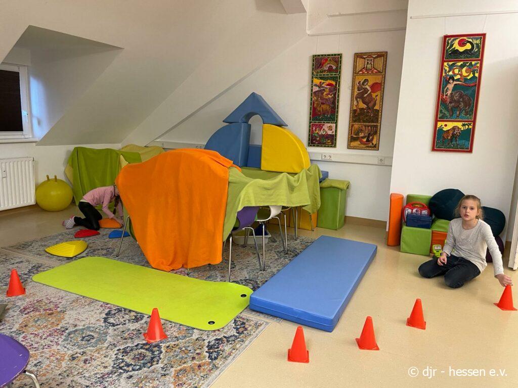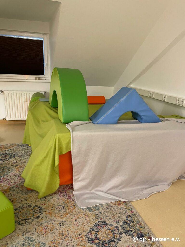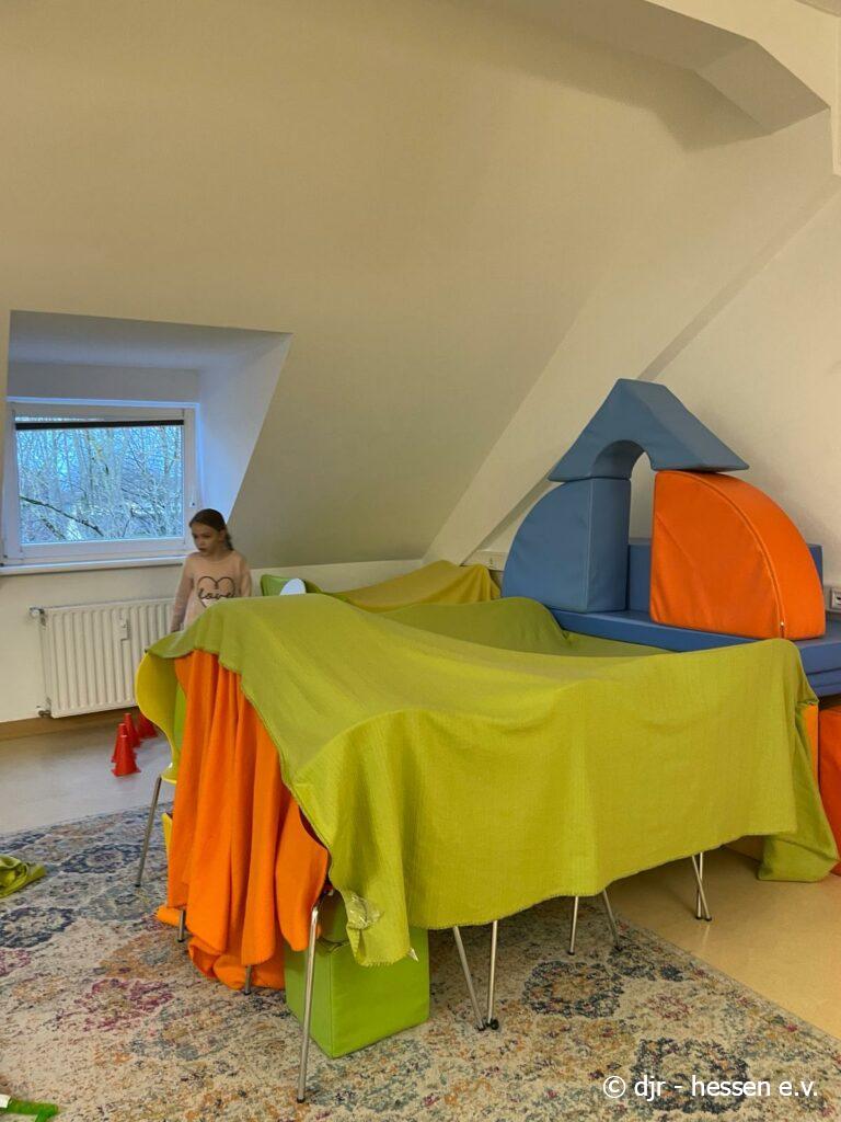 Die Kinder bauen Häuser aus Bausteinen und Decken. So können sie ihrer Kreativität freien Lauf lassen und es sich in den selbstgebauten Höhlen gemütlich machen.