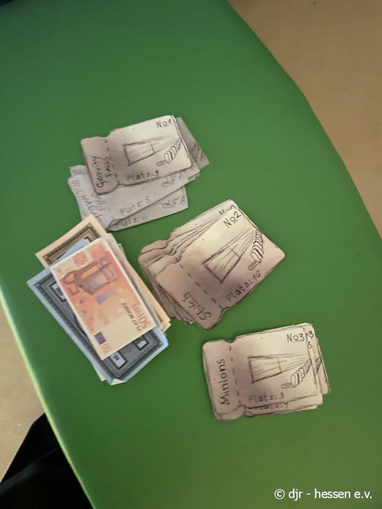 Inspiriert vom Kinotag gestalten die Kinder nun ihr eigenes Kino: Von Kinokarten über die Auswahl der Filme liegt alles in der Hand der Kinder.