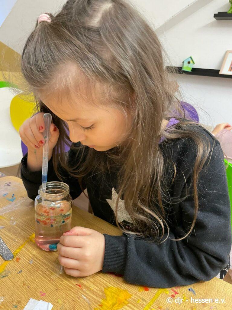 Durch einfache Experimente können die Kinder chemische Reaktionen beobachten und lernen Gesetze der Physik.