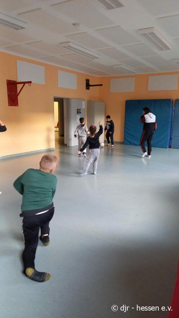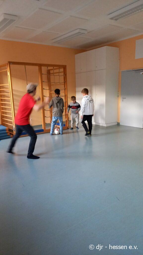 In der Sporthalle können die Kinder richtige Fußballturniere veranstalten und sich trotz des schlechten Wetters austoben.