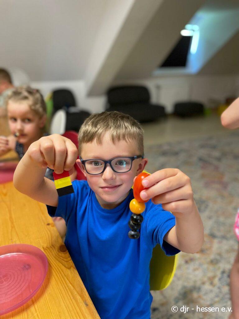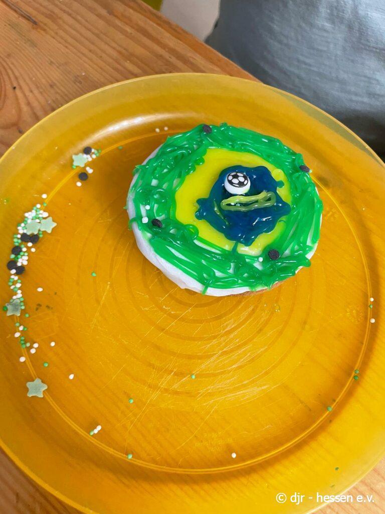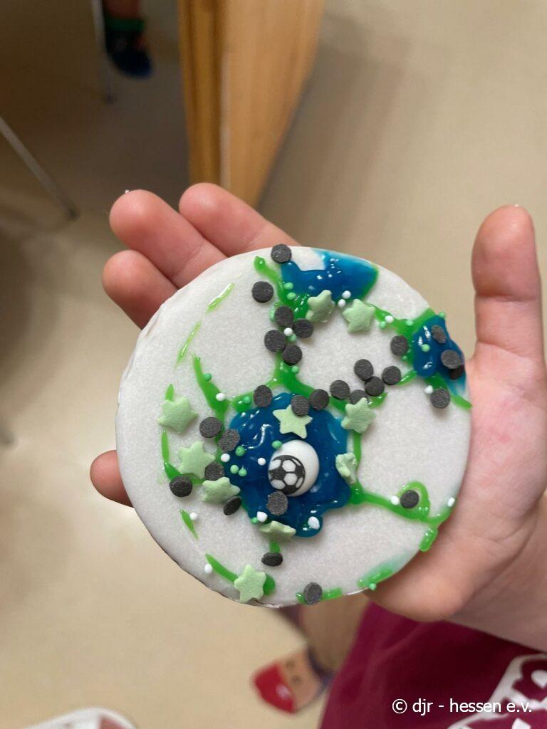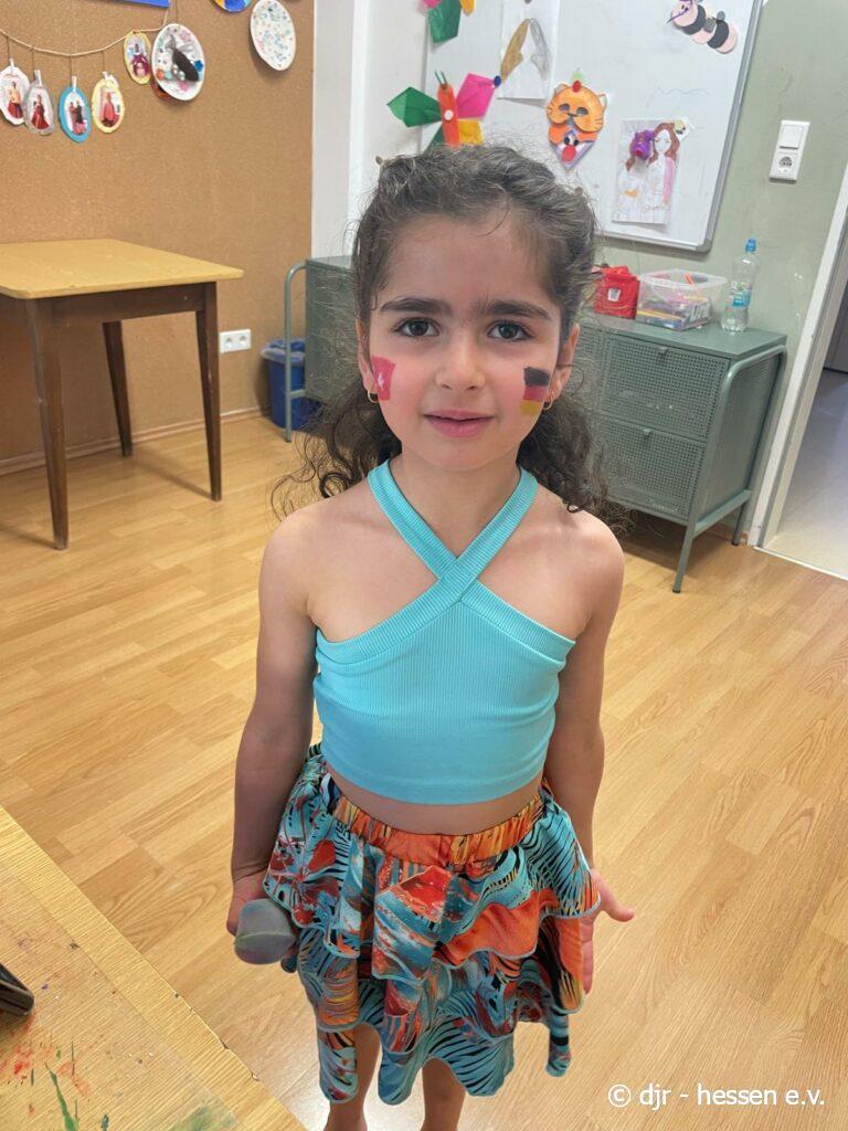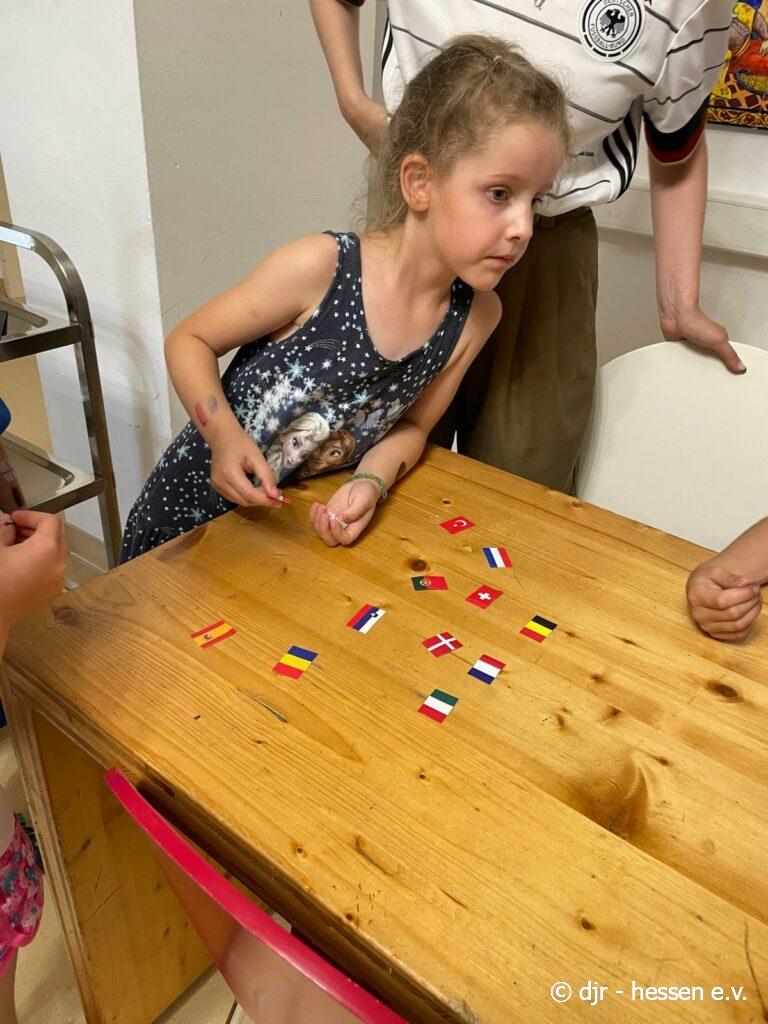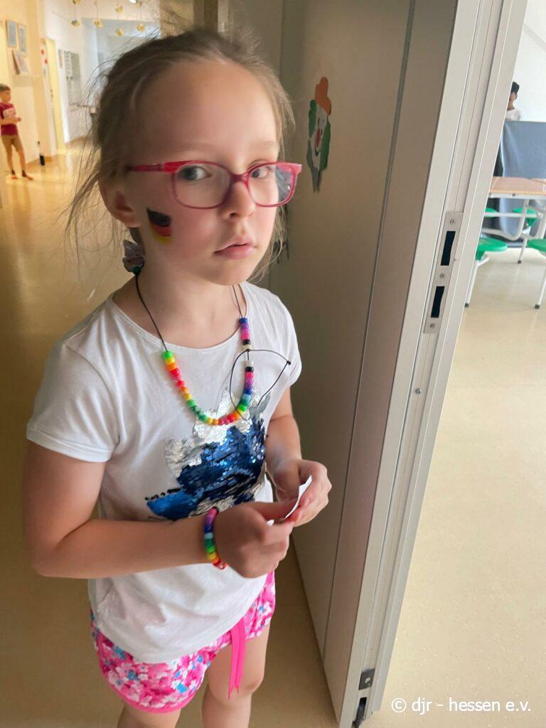 Abschließend gibt es eine große Fußballparty: Die Kinder meistern ein Fußballquiz und Spiele, können geschminkt werden und aus Essen Länderflaggen gestalten. Highlight waren sicherlich die Amerikaner im Fußball-Stil. So findet unsere Fußballwoche einen schönen Ausklang.