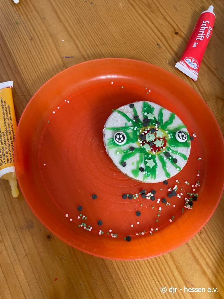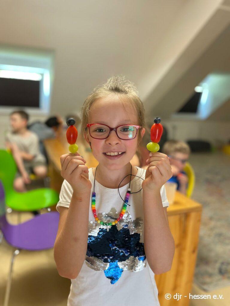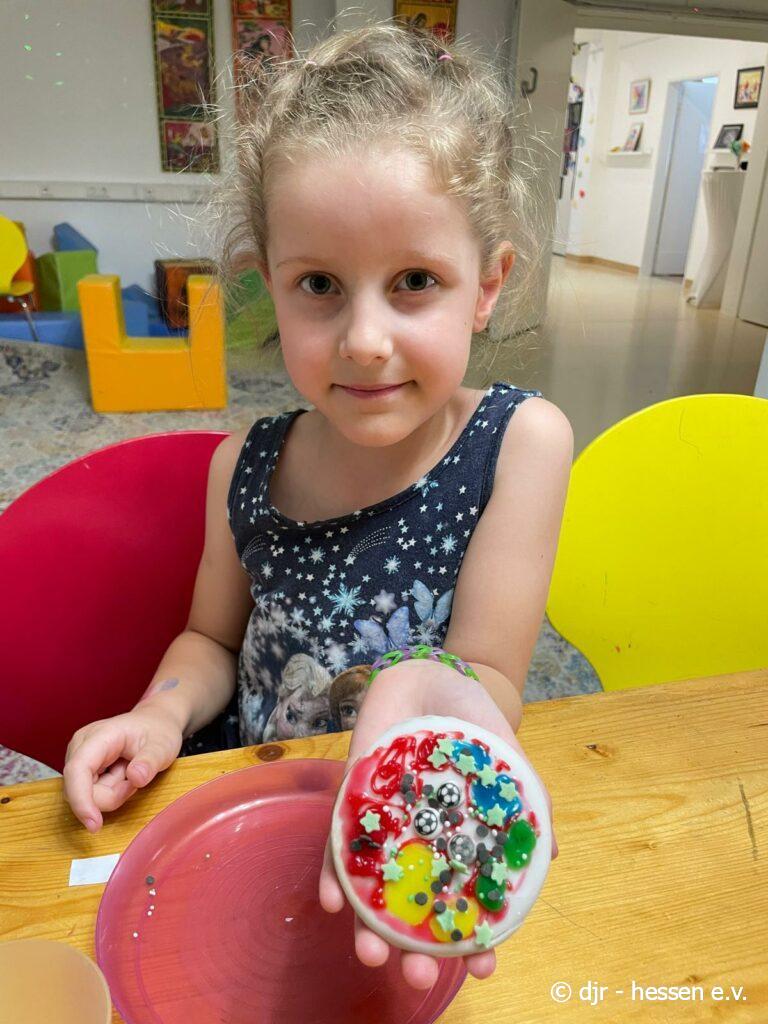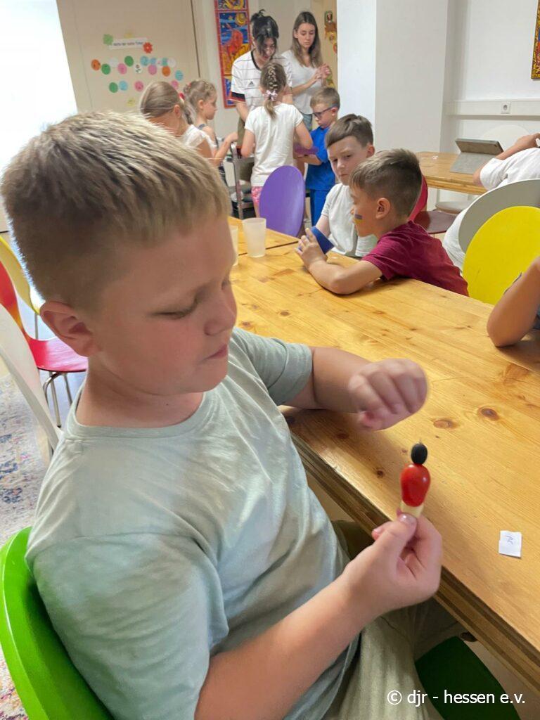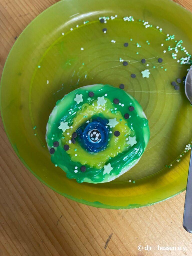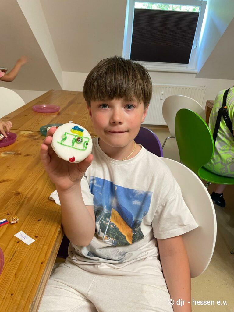 Abschließend gibt es eine große Fußballparty: Die Kinder meistern ein Fußballquiz und Spiele, können geschminkt werden und aus Essen Länderflaggen gestalten. Highlight waren sicherlich die Amerikaner im Fußball-Stil. So findet unsere Fußballwoche einen schönen Ausklang.