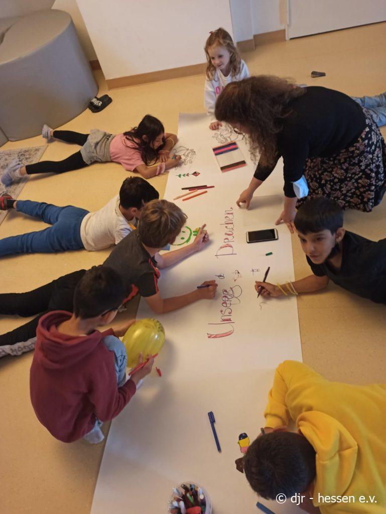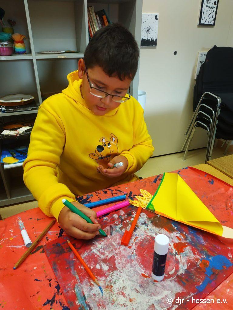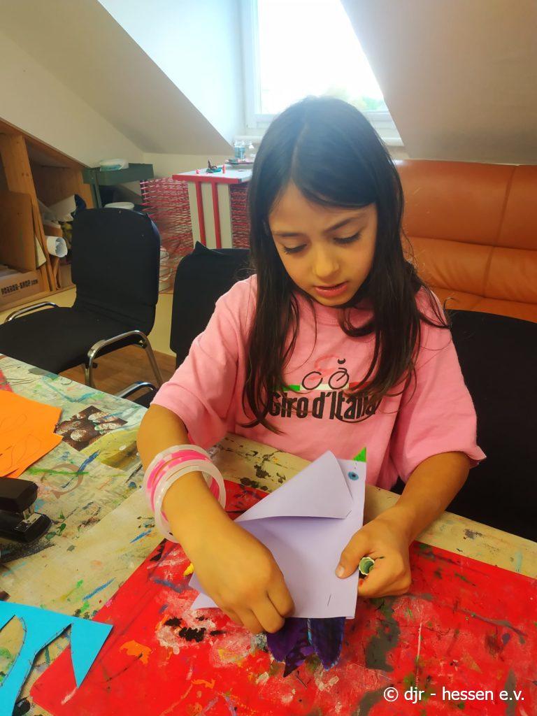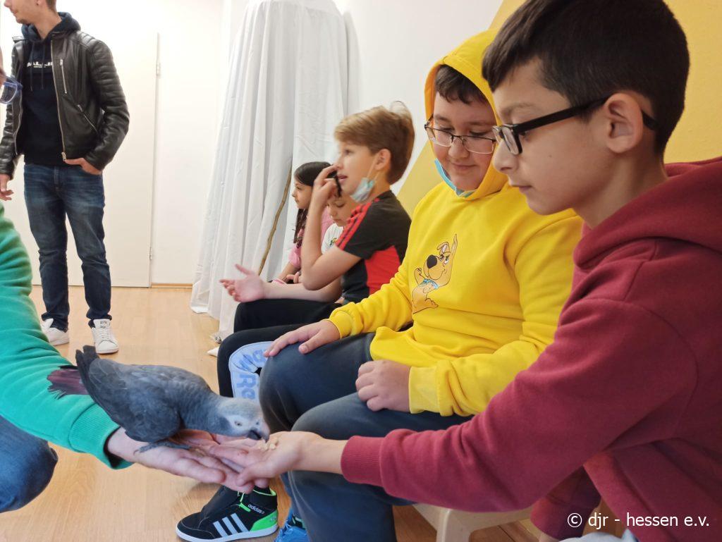 Was wäre denn der Herbst ohne das Basteln von Flugdrachen? Bevor es jedoch soweit war, konnten die Kinder voller Freude ganz besondere Gäste und wahre Meister des Fliegens begrüßen: Papageien, die den Kindern sogar aus der Hand gegessen haben! Nach dieser Begegnung fällt jedem das Drachen bauen umso leichter. Um den ereignisreichen Tag ausklingen zu lassen, haben die Kinder es sich in selbstgebauten Burgen und Höhlen gemütlich gemacht.