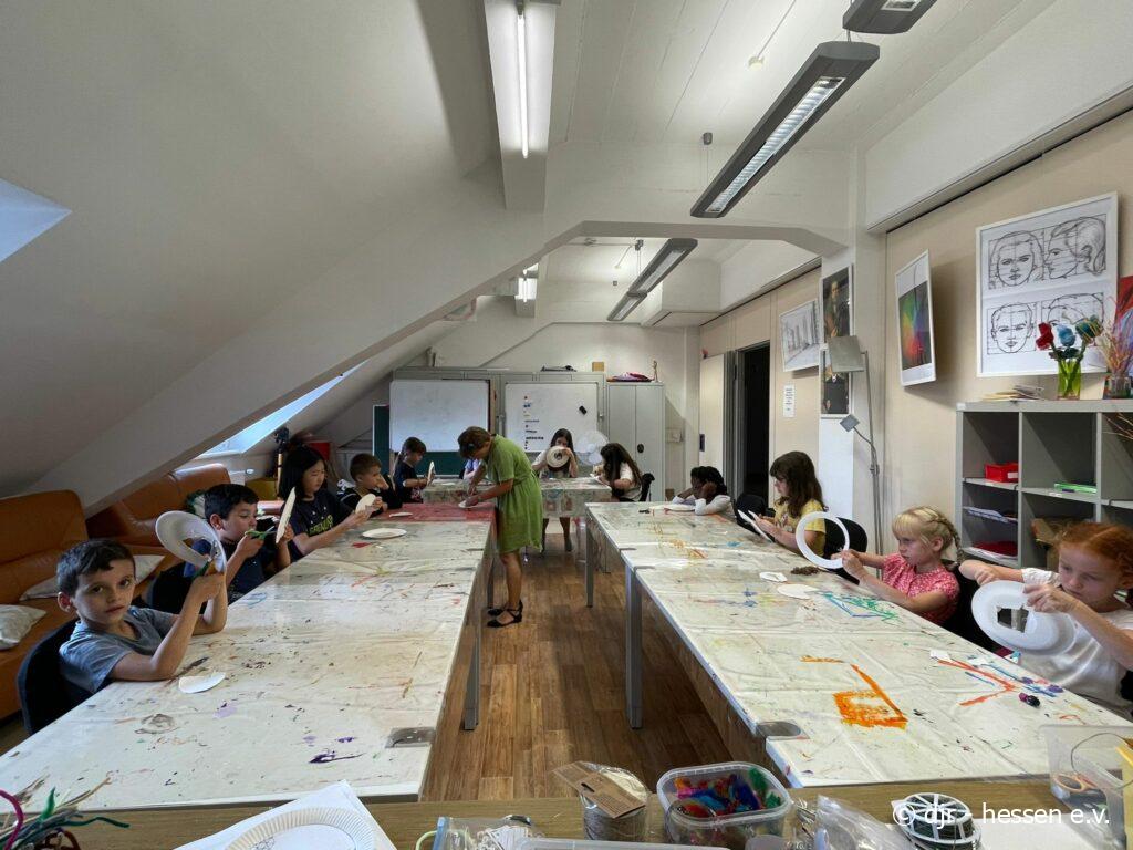 Die Kinder basteln sich individuelle Traumfänger, die sie vor bösen Träumen schützen können.