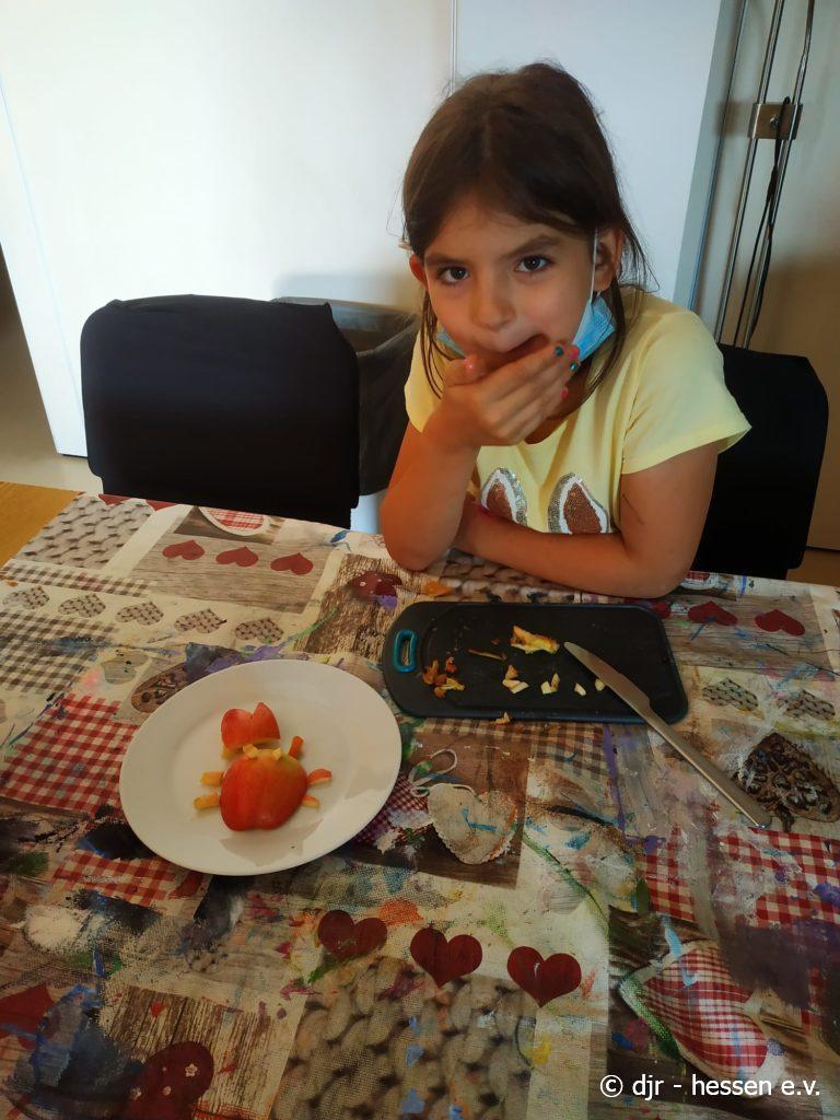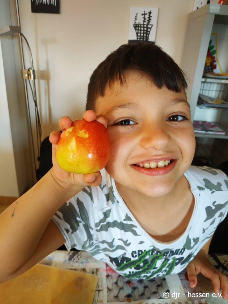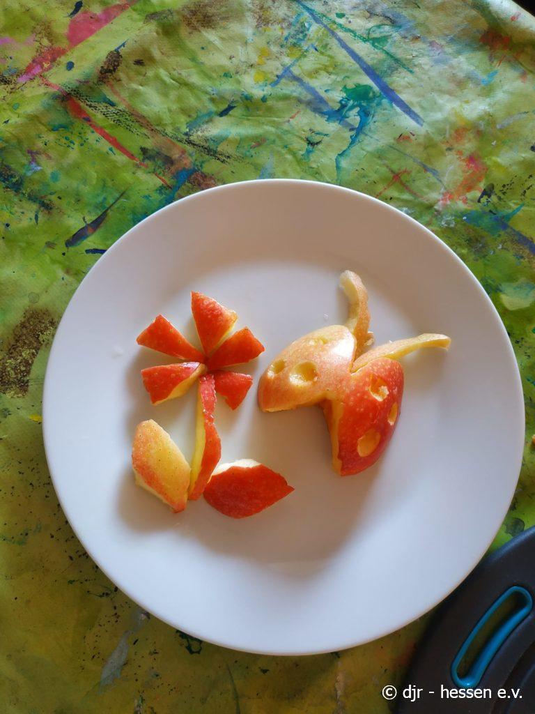 Äpfel essen ist eine Sache-wie schmeckt der Apfel aber, wenn wir vorher ein tolles Kunstwerk aus ihm machen? Die Kinder haben ihrer Fantasie freien Lauf gelassen und Tolles aus den Äpfeln geschaffen. Sie können eben nicht nur auf dem Papier kreativ werden, das gelingt ihnen mit jedem Medium.