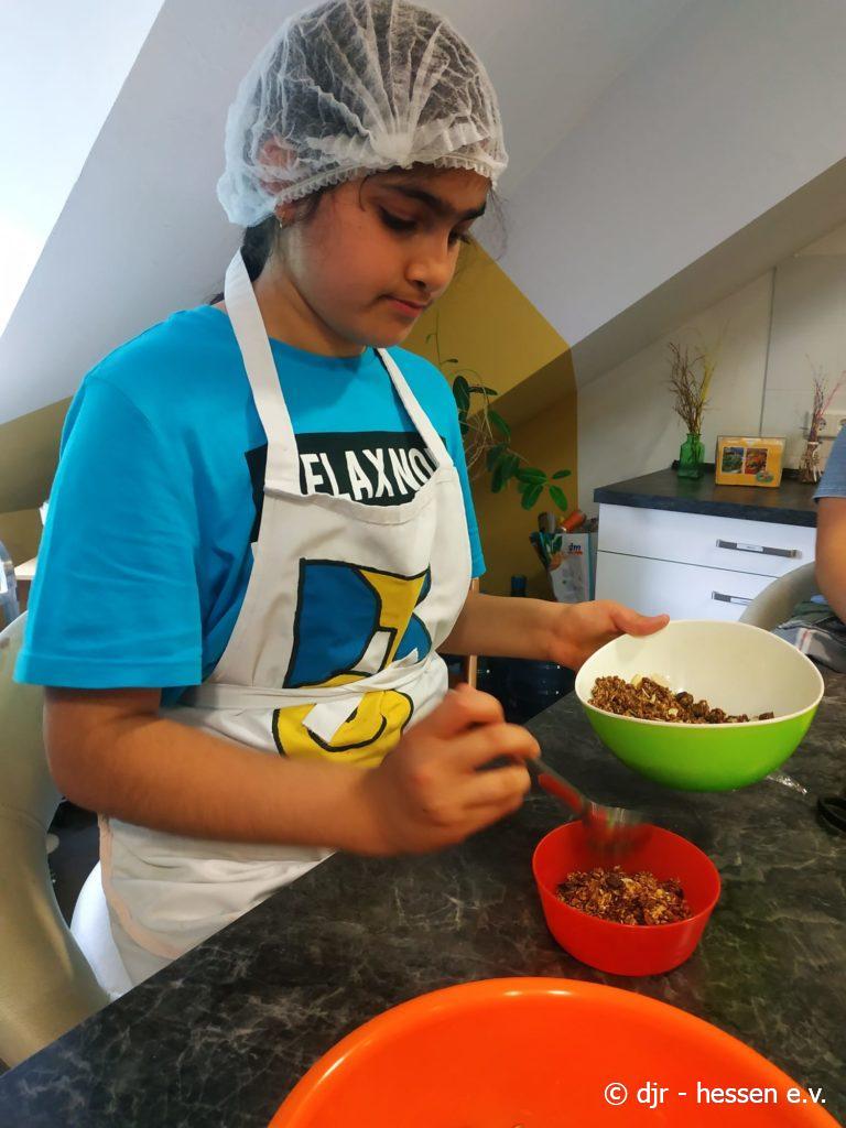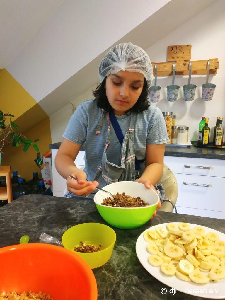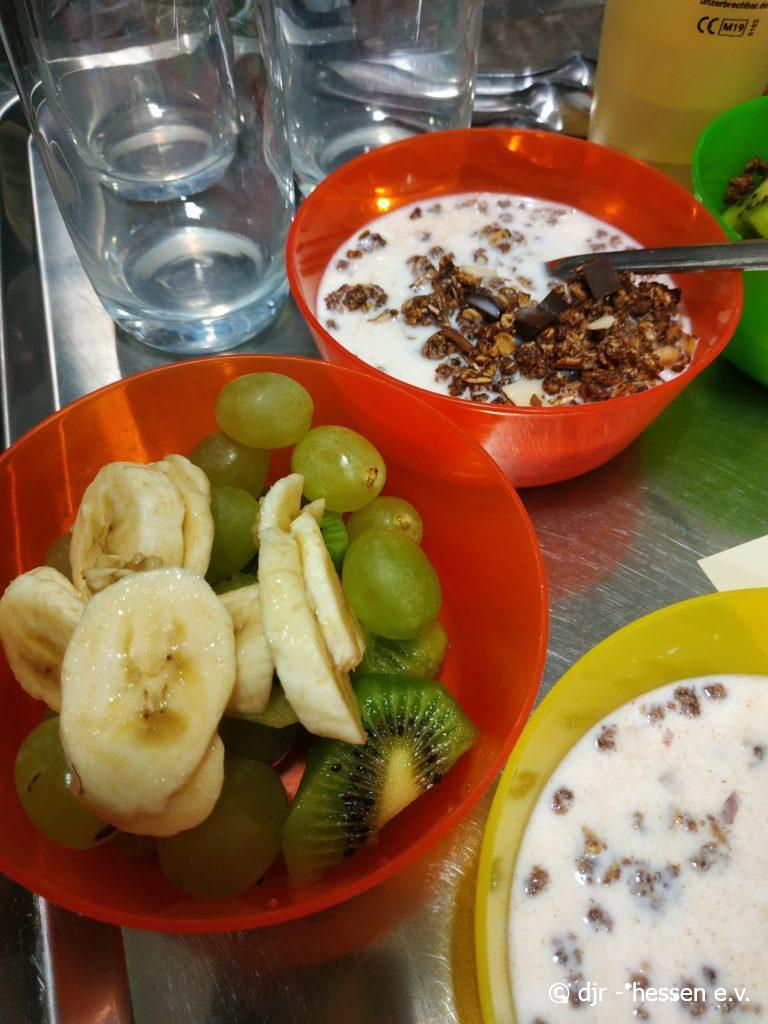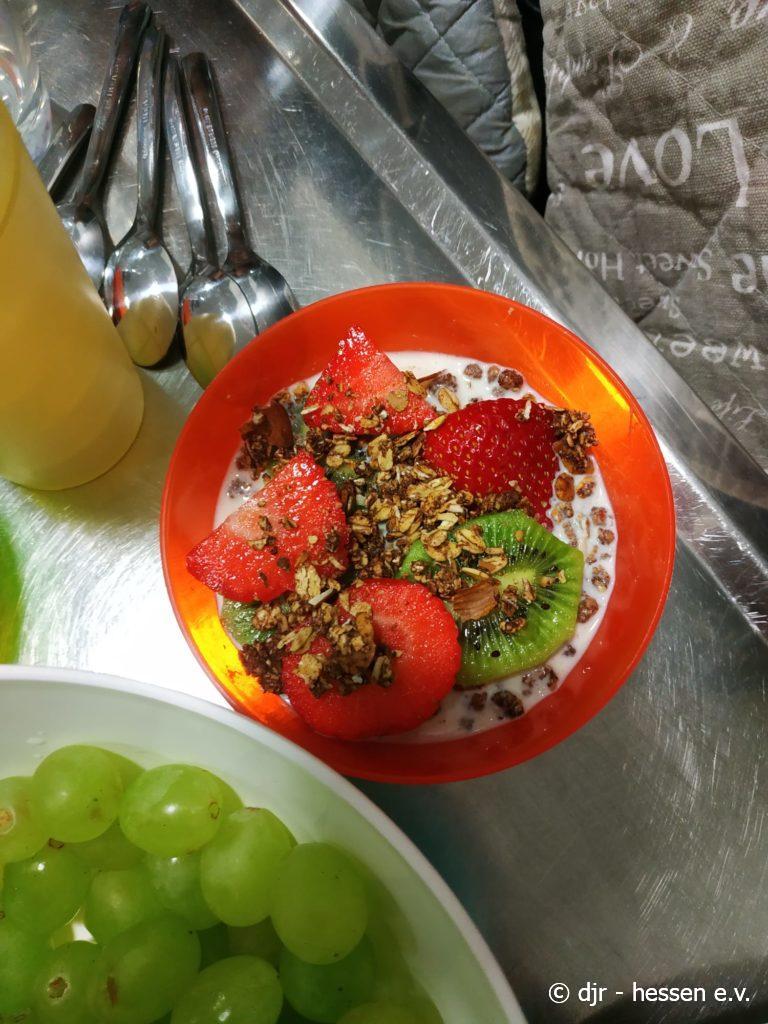 Die Koch-AG hat heute tolles Obstmüsli zubereitet. Gemeinsam haben sie das Obst geschnitten und sich anschließend selbst ihre Müslischüsseln zusammengelegt, so, wie es ihnen am besten schmeckt. Auf diese Weise hatte jede Person ihr leckeres und einzigartiges Obstmüsli.