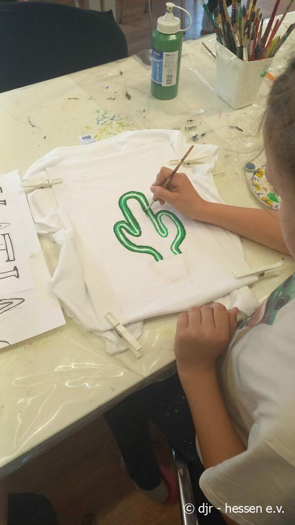 Die Kinder bemalen heute Federmäppchen und T-Shirts mit Textilfarben. So schaffen sie sich individuelle Werke ganz nach ihrem Geschmack, die sich in keinem Geschäft wiederfinden lassen. Die Kinder können so ihrer Kreativität freien Lauf lassen und haben am Ende ihr fertiges Kunstwerk immer dabei.