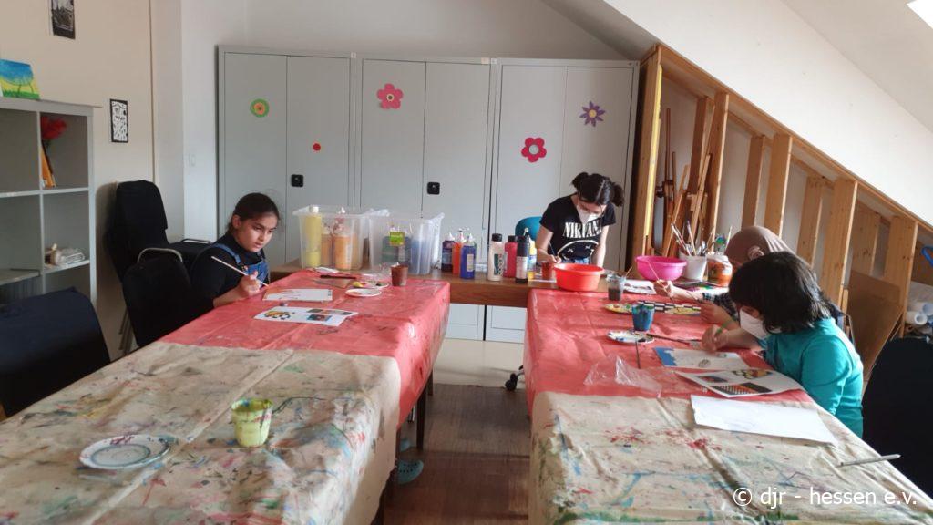 Unser Ziel: neue Bilder für das Treppenhaus. Unsere Mittel: Leinwände, Farben und ganz schön viele Ideen und Kreativität von den Kindern.