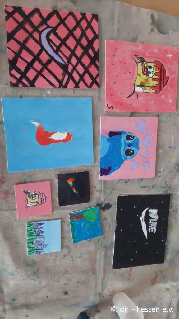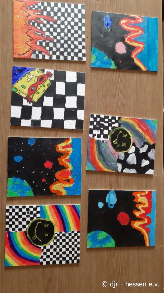 Gemeinsam haben wir die Zeit produktiv genutzt und abstrakte Muster und unsere Kindheitshelden auf die Leinwände gezaubert.