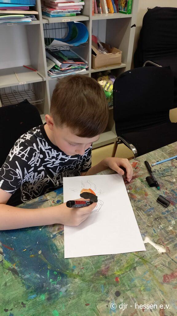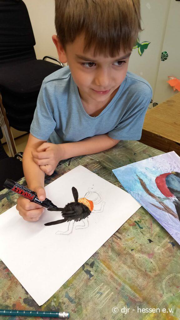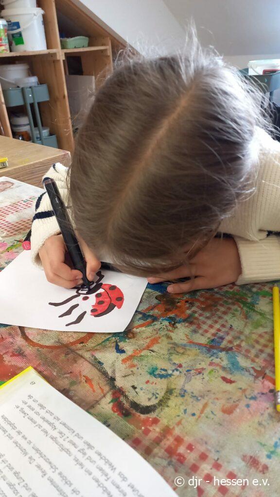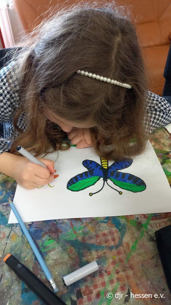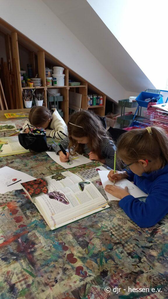 Die Kinder aus dem Malkurs tauchen ein in die Welt der Insekten und erwecken verschiedene Tiere zum Leben.