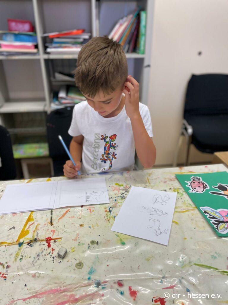 Die Kinder lassen ihrer Kreativität freien Lauf im Malkurs. Heutiges Thema: Einen eigenen Comic gestalten. Jede Geschichte ist individuell und einzigartig, ebenso der Malstil der Kinder. So ist jeder Comic etwas ganz besonderes.