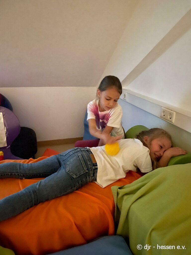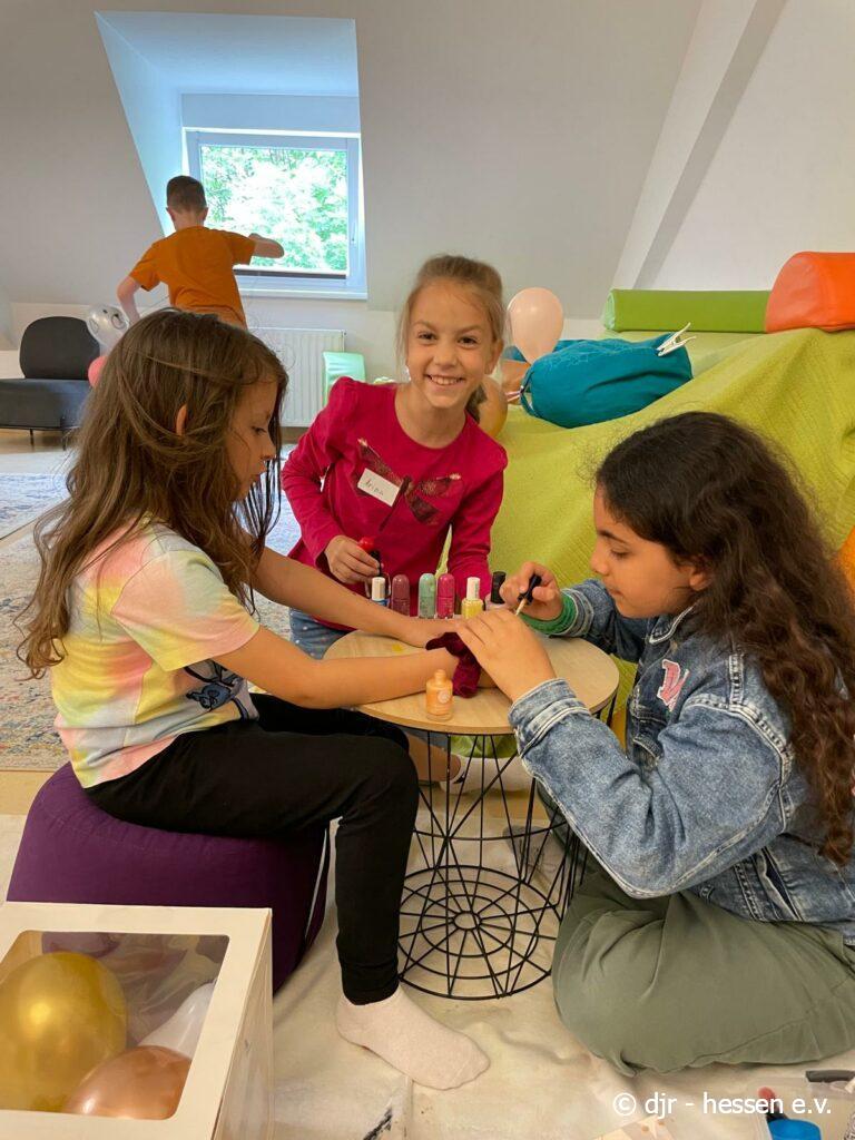 Ein Projekt, das von den Kindern über Wochen hinweg durchgeführt wird, ist das Massagesalon. Angefangen mit verschiedenen Massageangeboten hat sich das Studio erweitert: Mittlerweile leiten die Kinder auch ein Nagelstudio, ein Tattoostudio und Yogakurse.
