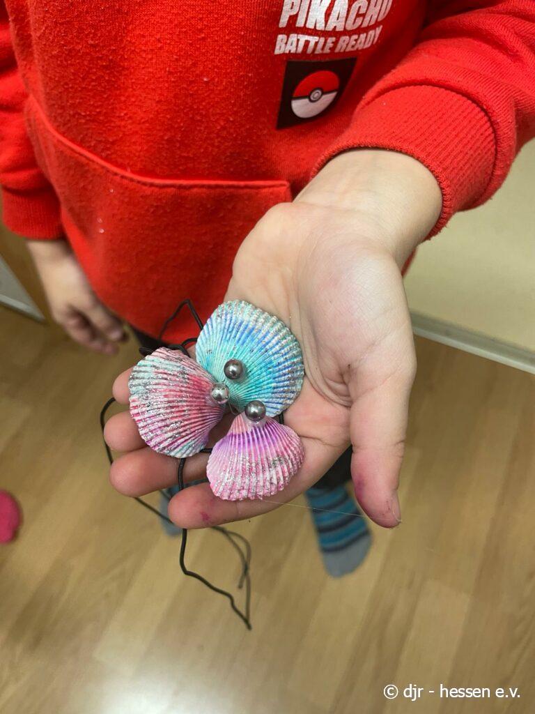 Die Kinder stellen einzigartigen Muschelschmuck her. Ob als Geschenk, Freundschaftsanhänger oder für sich selbst – die Ketten bereiten in jedem Fall Freude und fördern die Kreativität der Kinder.